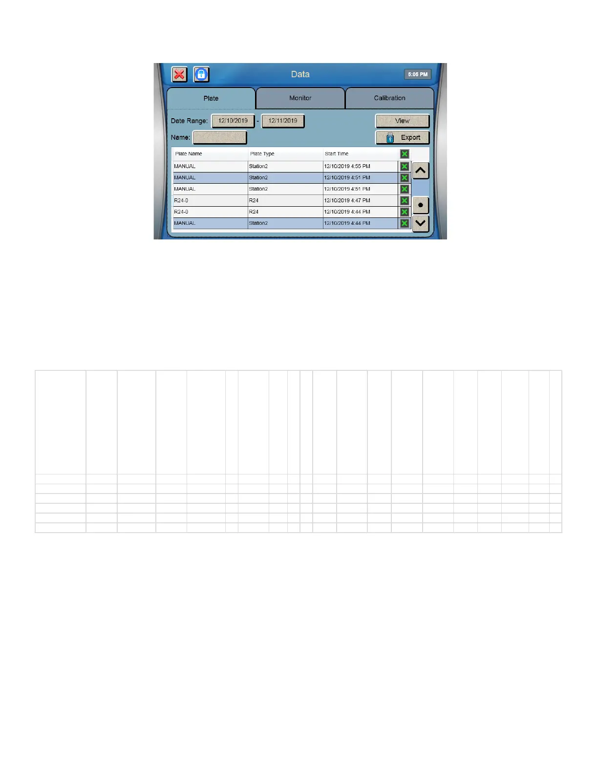 Plug a flash drive into the 2900 Series’ USB port, then touch the [Export] button to send the selected sample results from