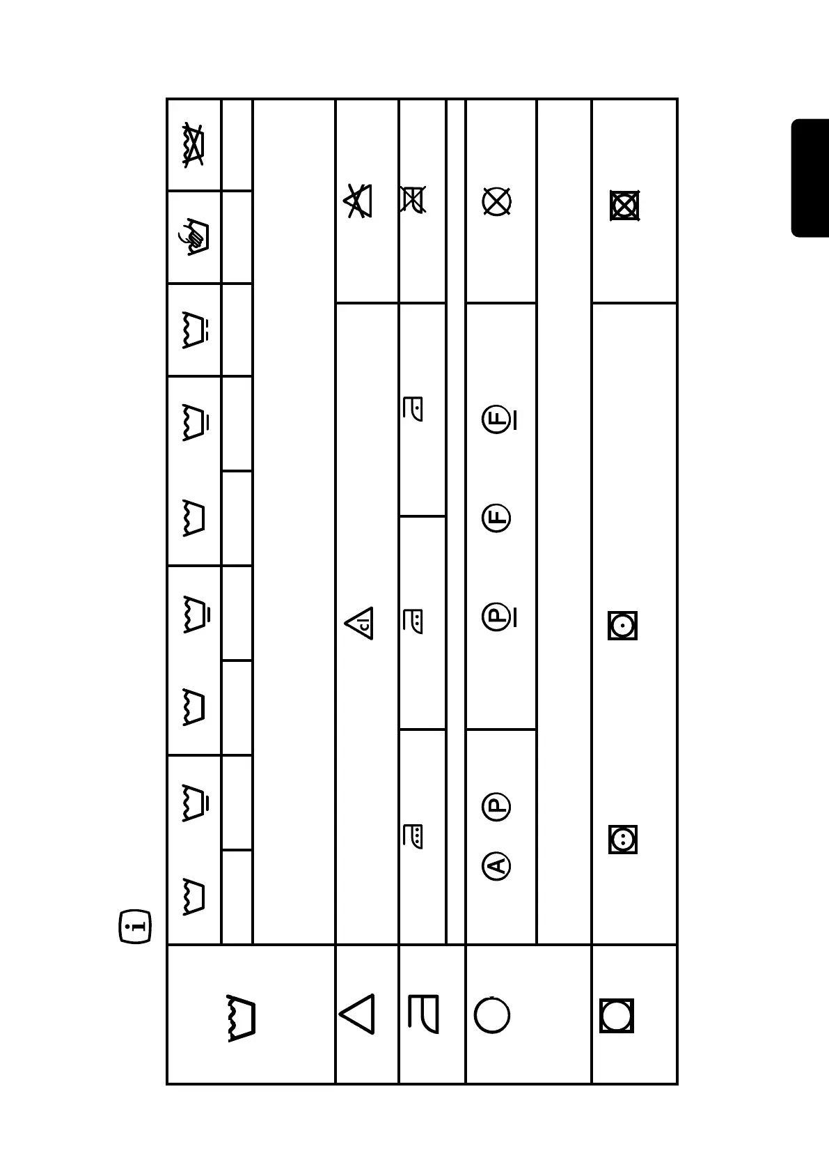 De streep onder de cirkel betekent: lichte belading, hoge vlotverhouding, weinig mechanische beweging, korte reinigings, -spoel- en