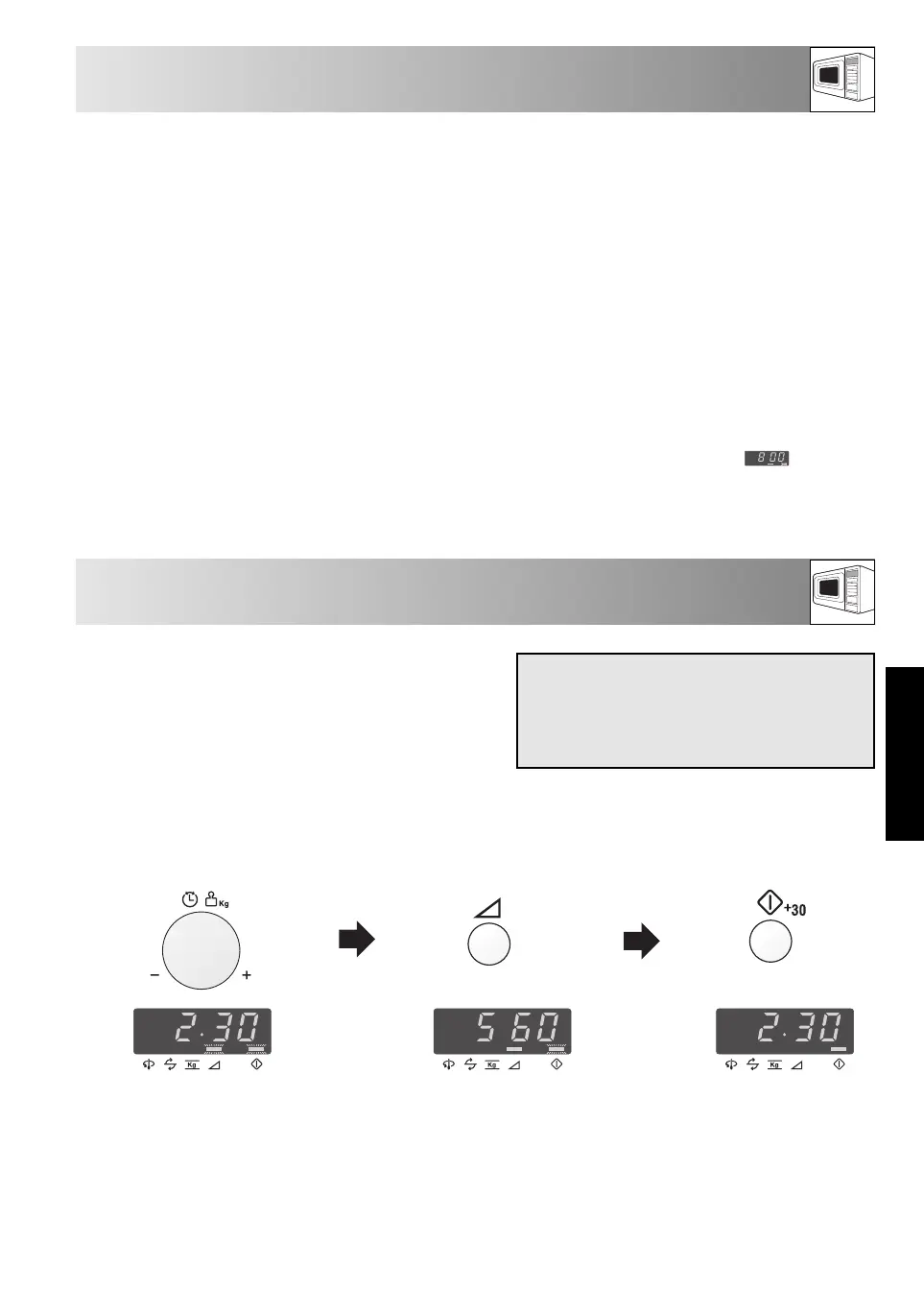 aangehouden. Het terugtellen van de tijd gaat weer verder als u de deur sluit en toets START/+30 indrukt.