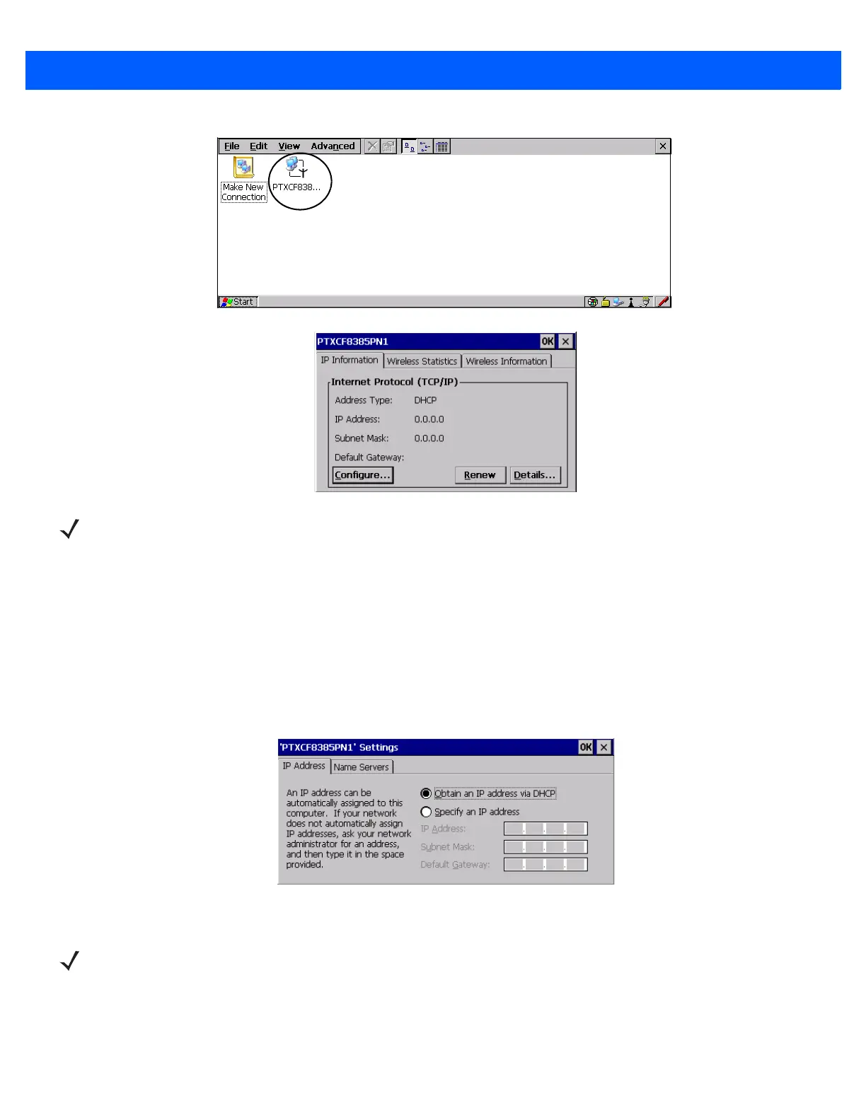4. To define a static IP address, tap the Configure button. The Summit WLAN Adapter Settings menu
