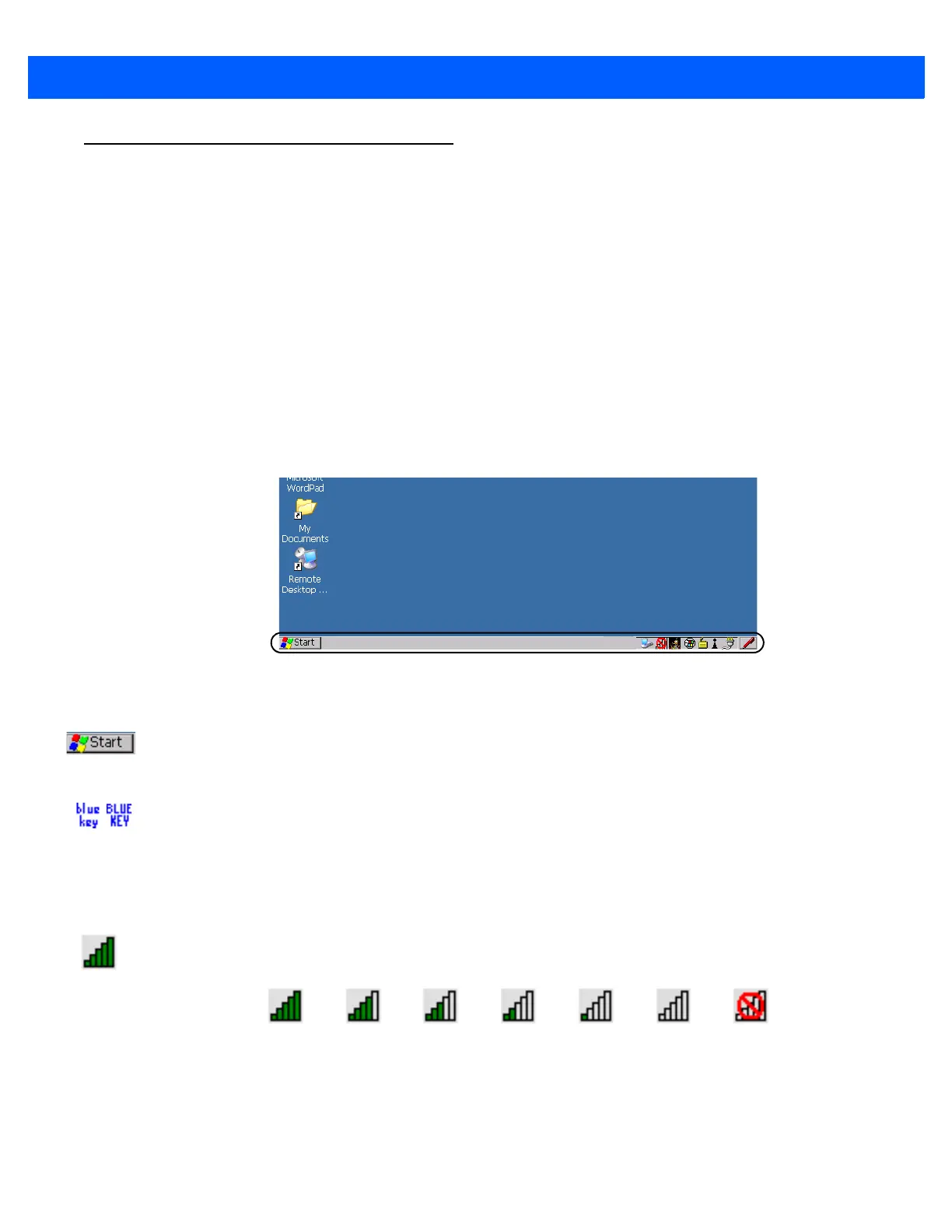 taskbar — for example, pressing [BLUE] twice displays BLUE KEY in the taskbar.