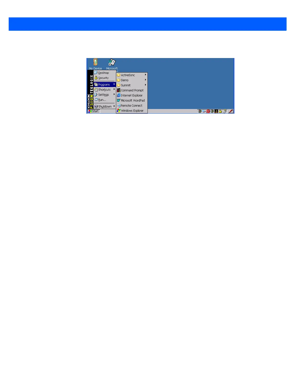 Explorer, along with installed applications (e.g., Microsoft WordPad), Remote Desktop Connection and