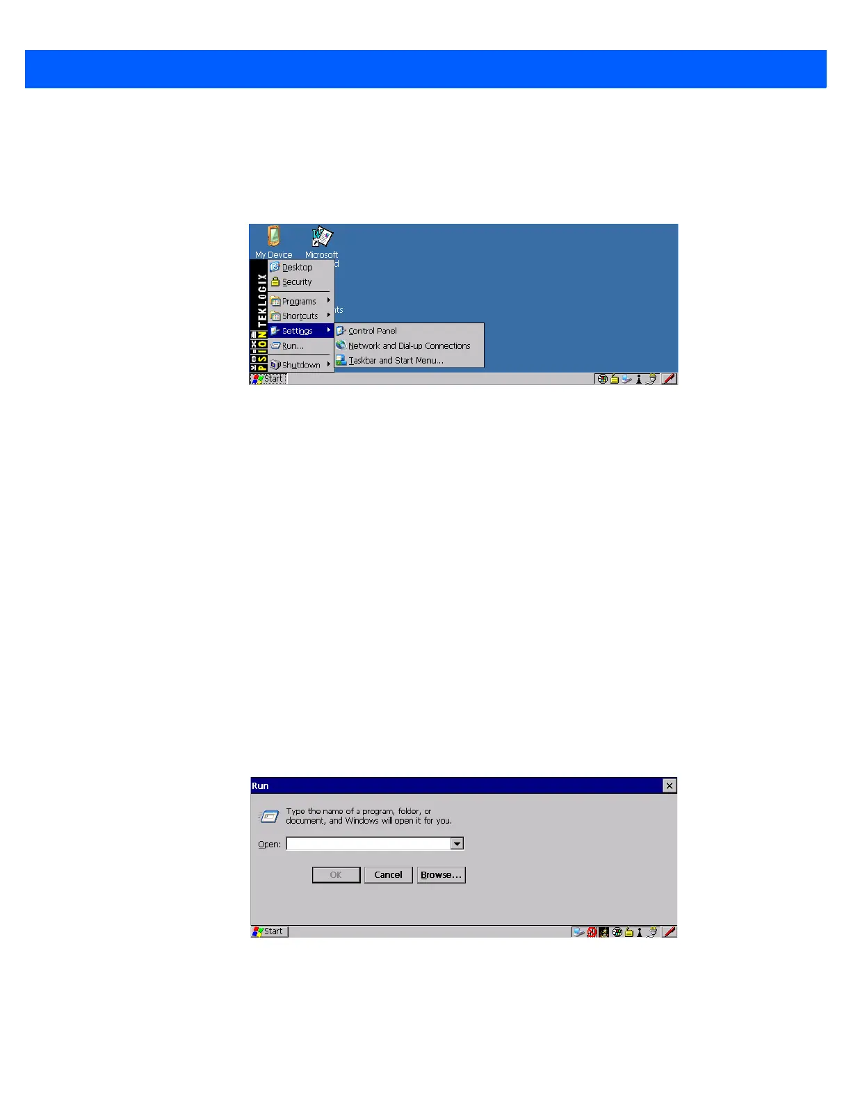 Choosing the Run option from the Start Menu displays a dialog box in which you can enter the name of the