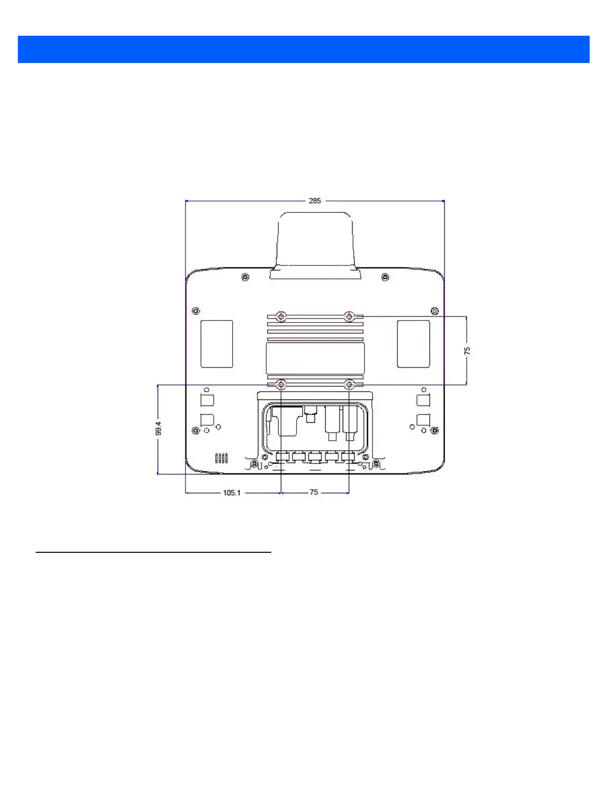 The VESA drill holes on the 8585 are visible on this diagram. Dimensions without add-ons (in mm).