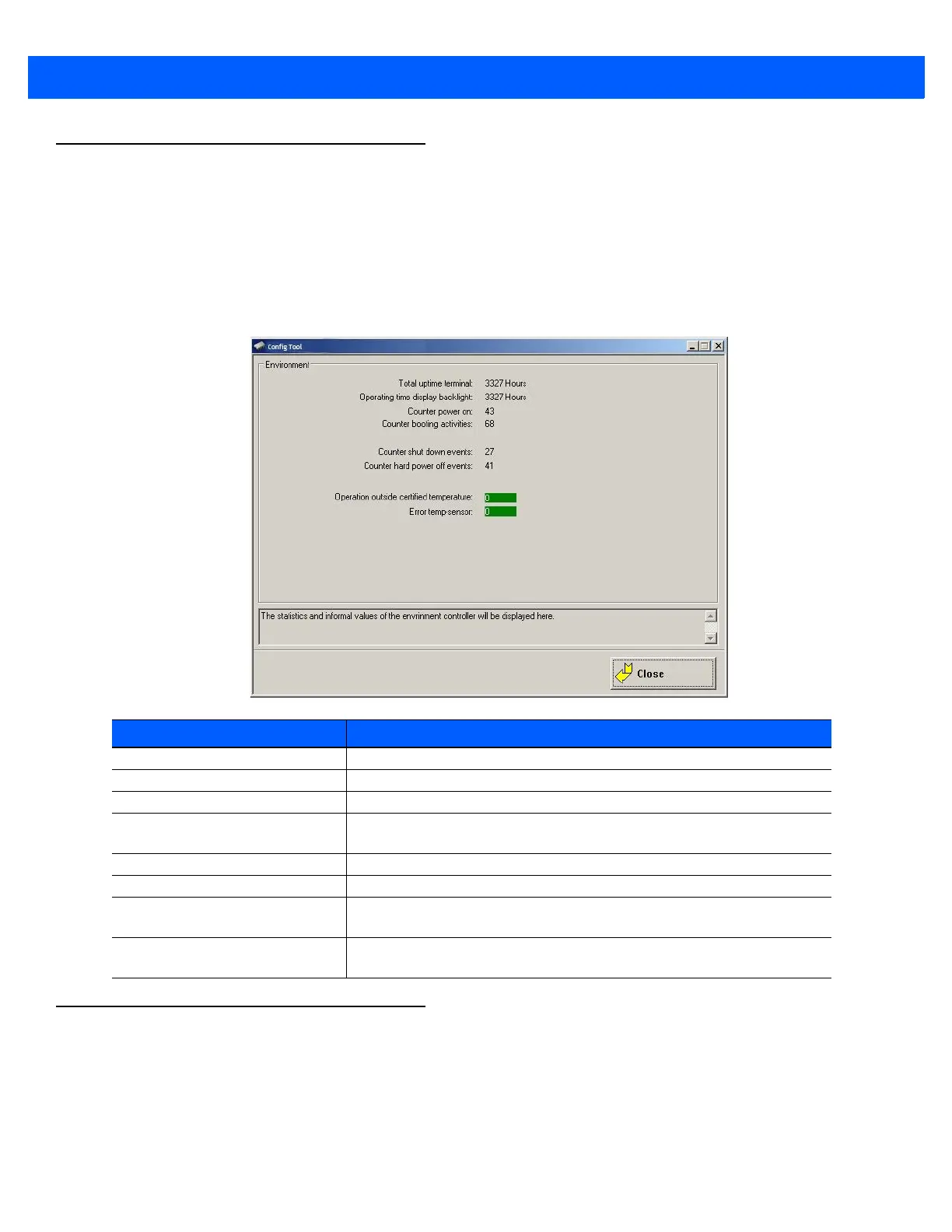 The environment controller in the 8585 features monitoring and statistics functions. The Environment menu