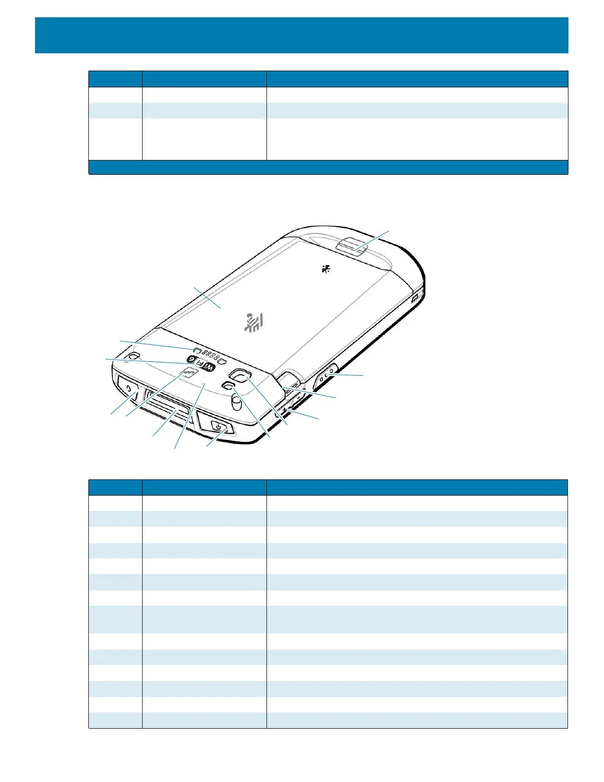 8 Power button Turns the display on and off. Press and hold to reset the device,