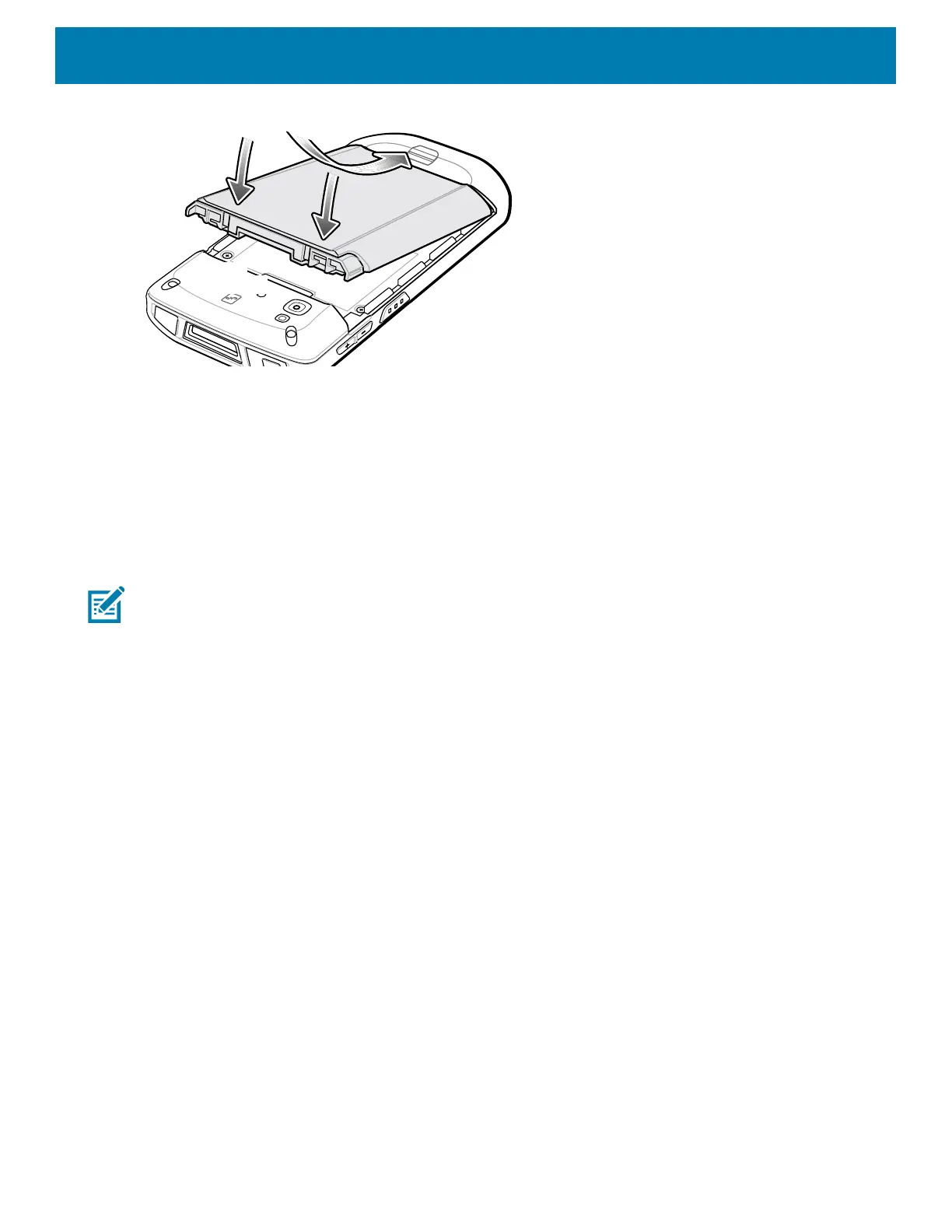 Press the battery down into the battery compartment until the battery release latches snap into place.