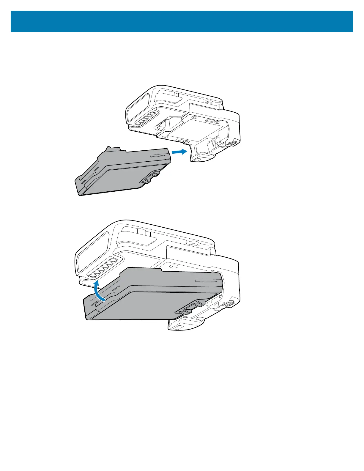 Install the 2400 mAh battery into the WS50 RFID Converged Scanner.
