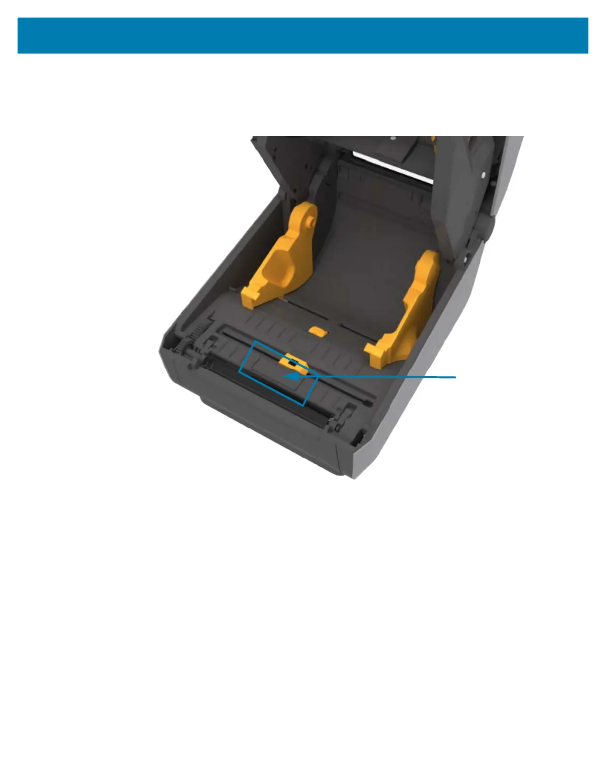 The ZD621R printers antenna is located between the platen rollover and movable media sensor channel in