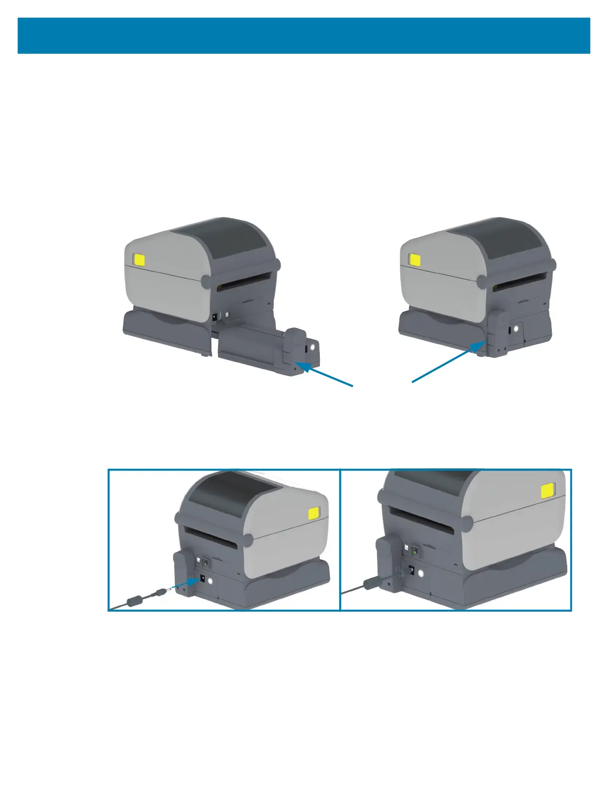 3. Attach the printer’s power supply to the battery to wake up the battery from Shutdown Mode and begin