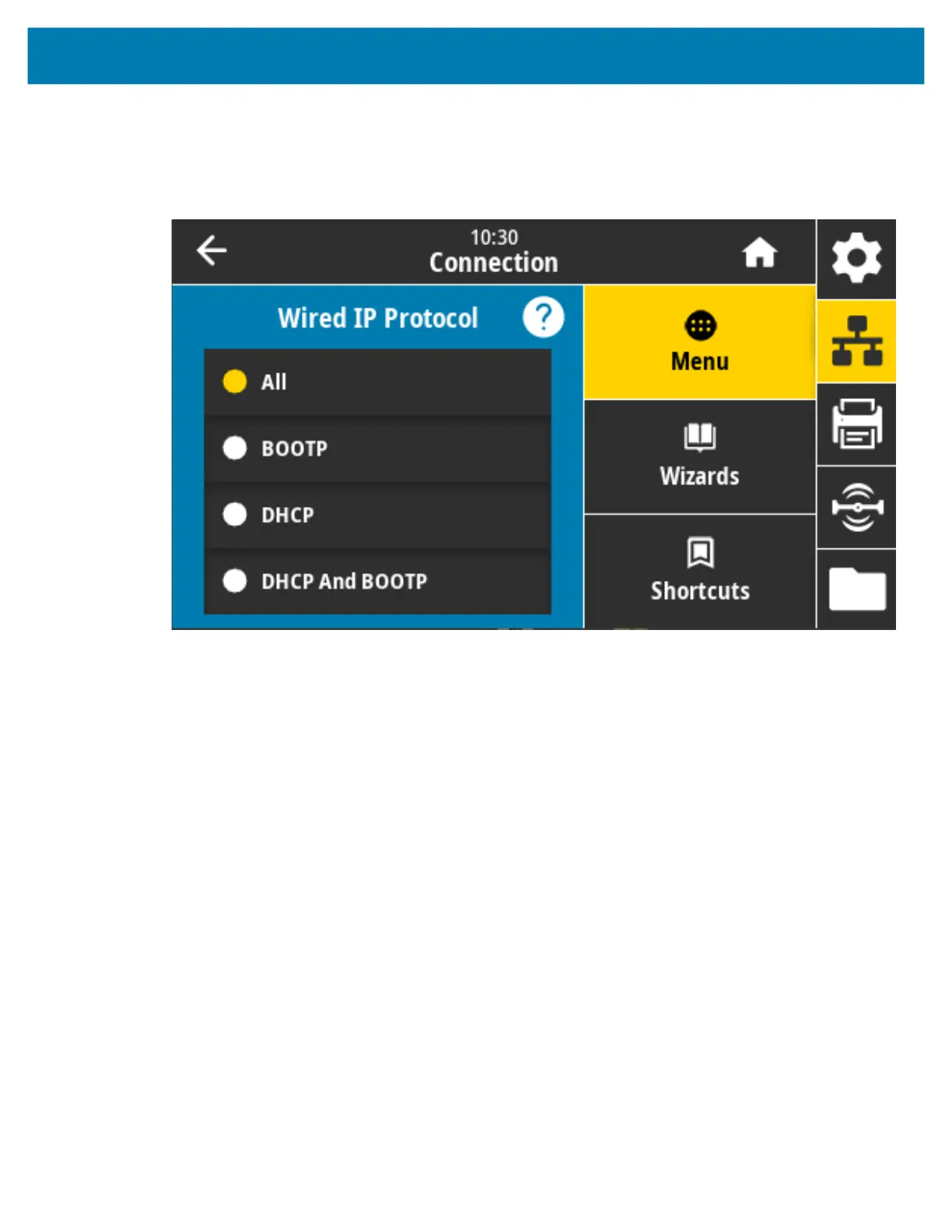 Connection > Wired > Wired IP Protocol