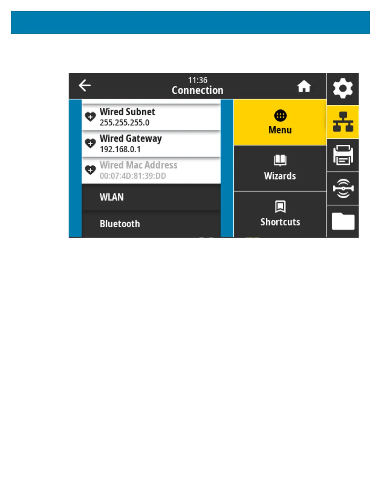 View the Media Access Control (MAC) address of the wired print server. This value cannot be modified.