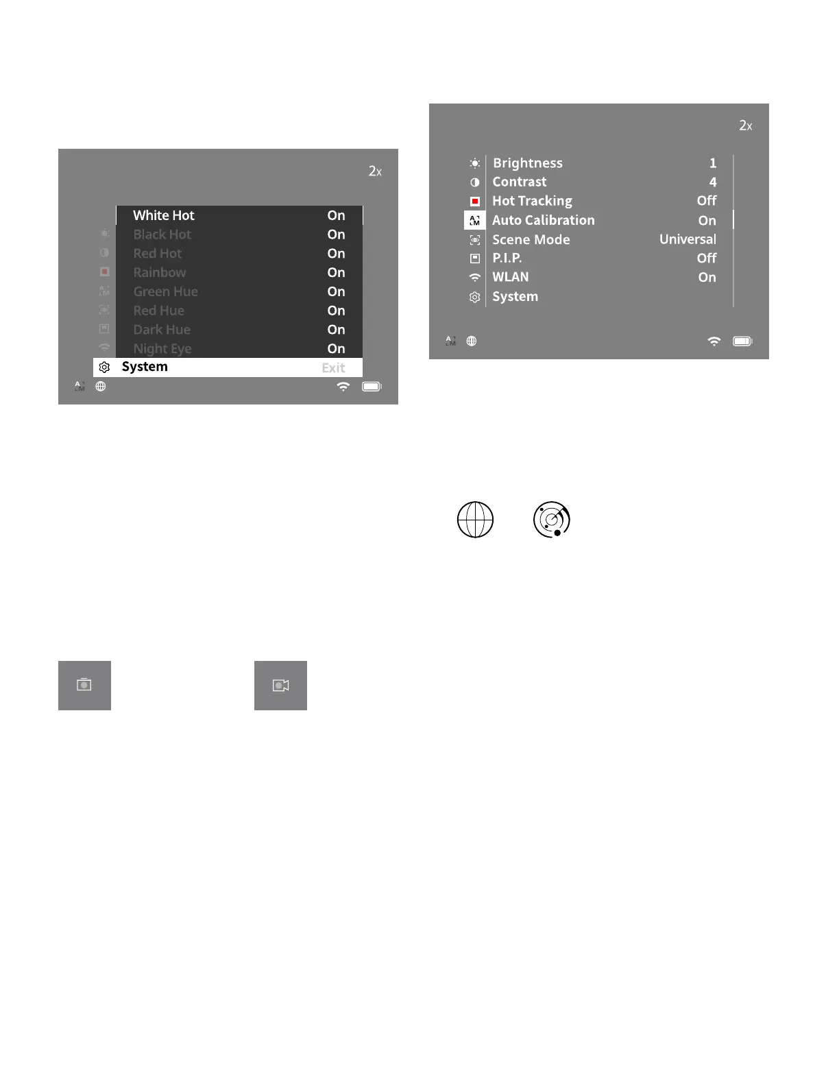 • Black Hot: Cold areas are displayed here in white and warm areas in black.