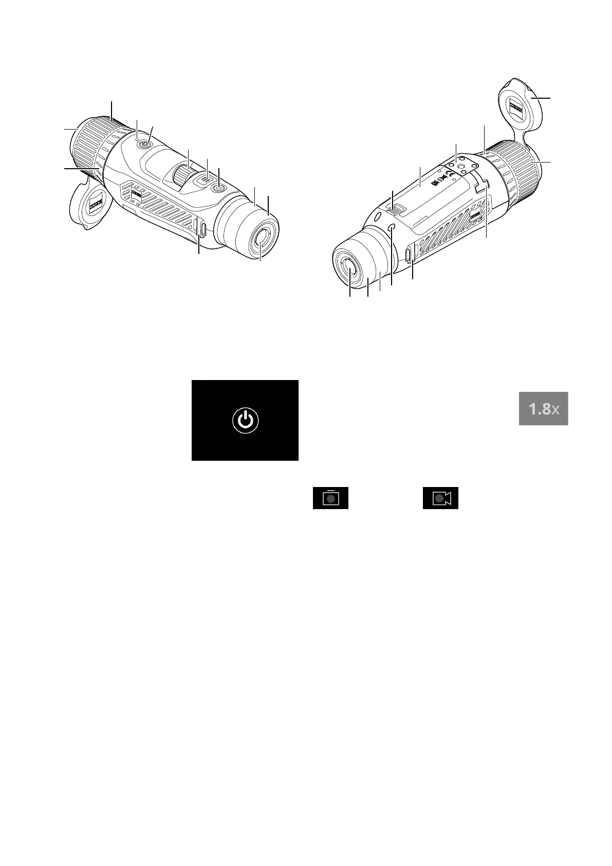 Shutter button (7) to switch between the two shooting modes. The symbol at the