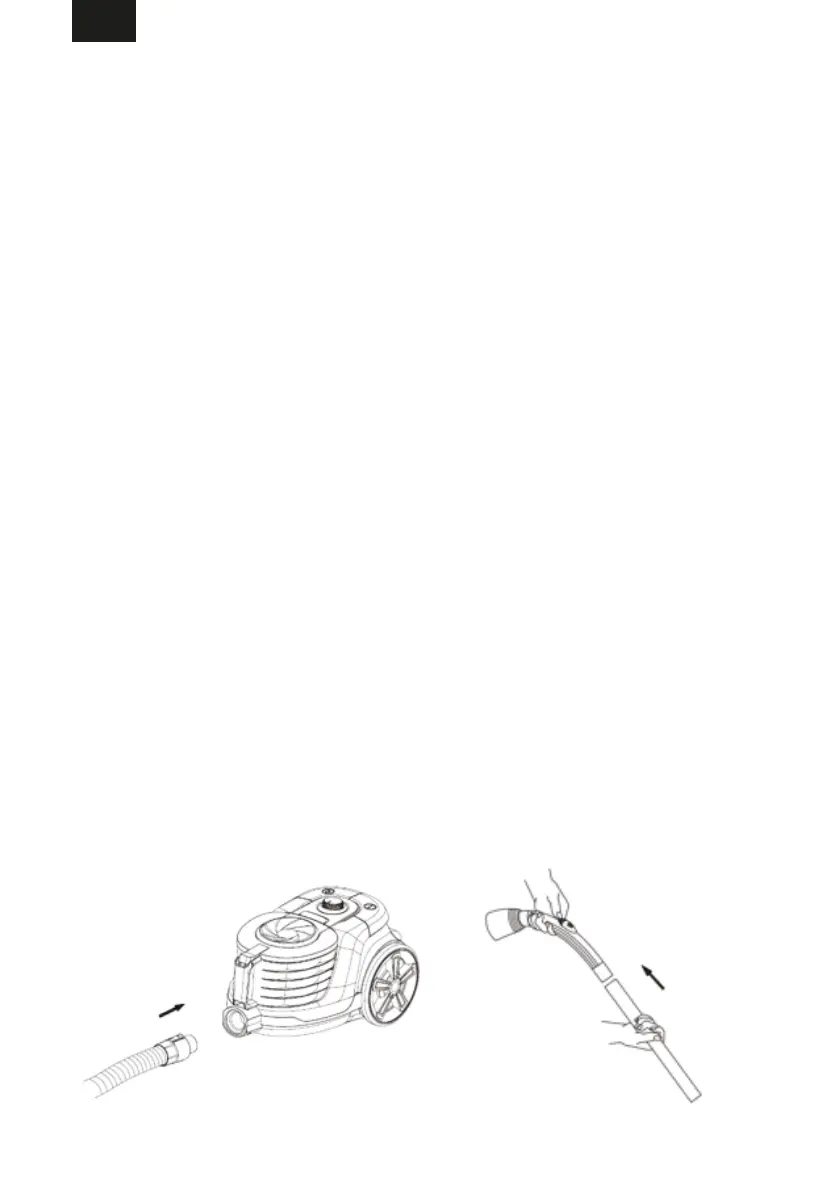 1. Koniec pružnej hadice vložte do sacieho otvoru vysávača.