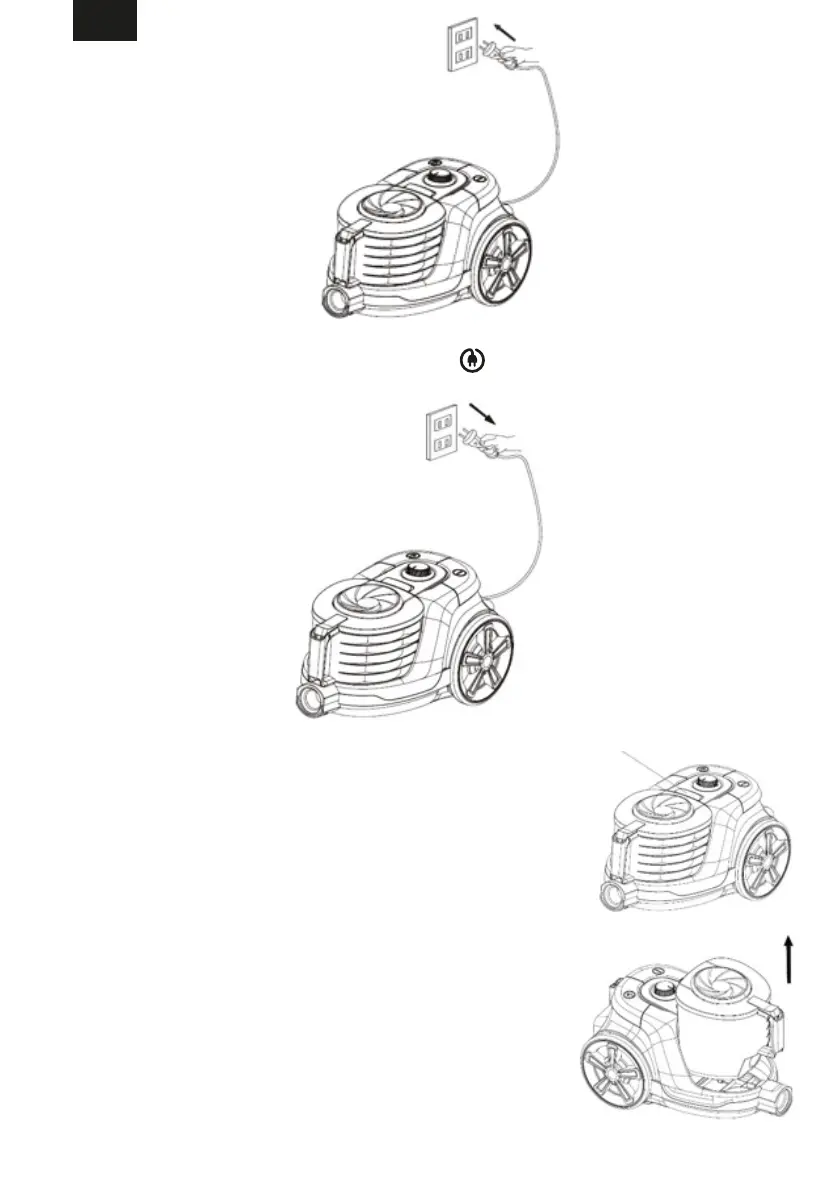 1. Aspiratorul poate fi ridicat și transportat de mâner. Niciodată nu trageţi şi nu ridicaţi aspiratorul de cablu.