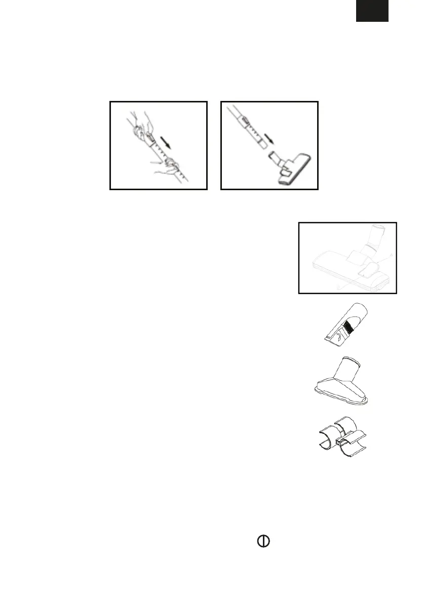Mâner pentru accesorii poate fi montat pe tubul telescopic. Duza pentru