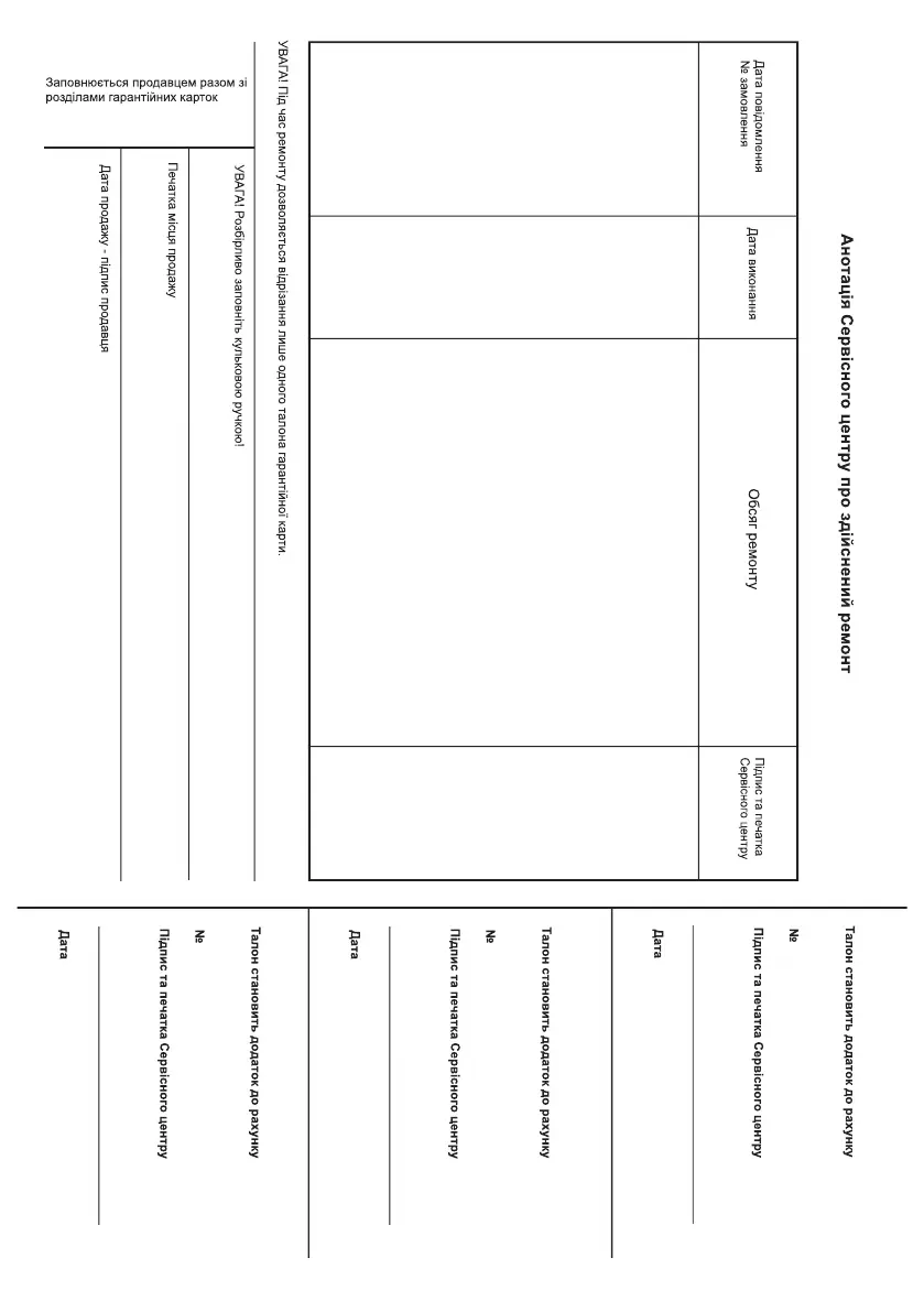 УВАГА! Під час ремонту дозволяється відрізання лише одного талона гарантійної карти.