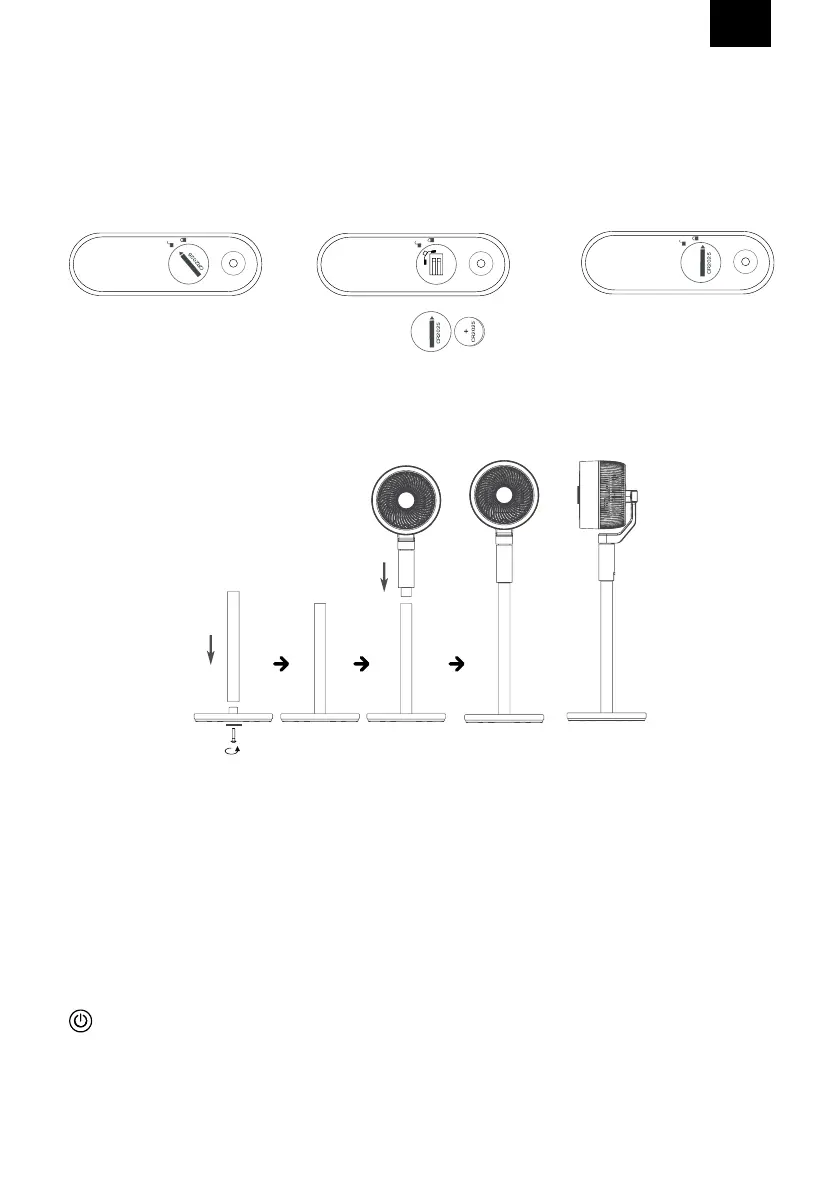 Okrúhla spona (Stlačte a držte, aby ste oddelili hlavu ventilátora od spojovacej tyče).