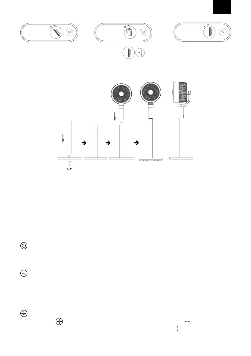 ”, aby wentylator oscylował poziomo, a powiązana kontrolka „ ” włączy się. Naciśnij