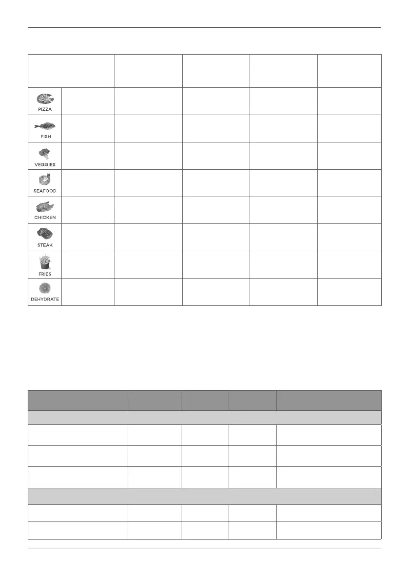 The following table provides indicave informaon for cooking various foods.