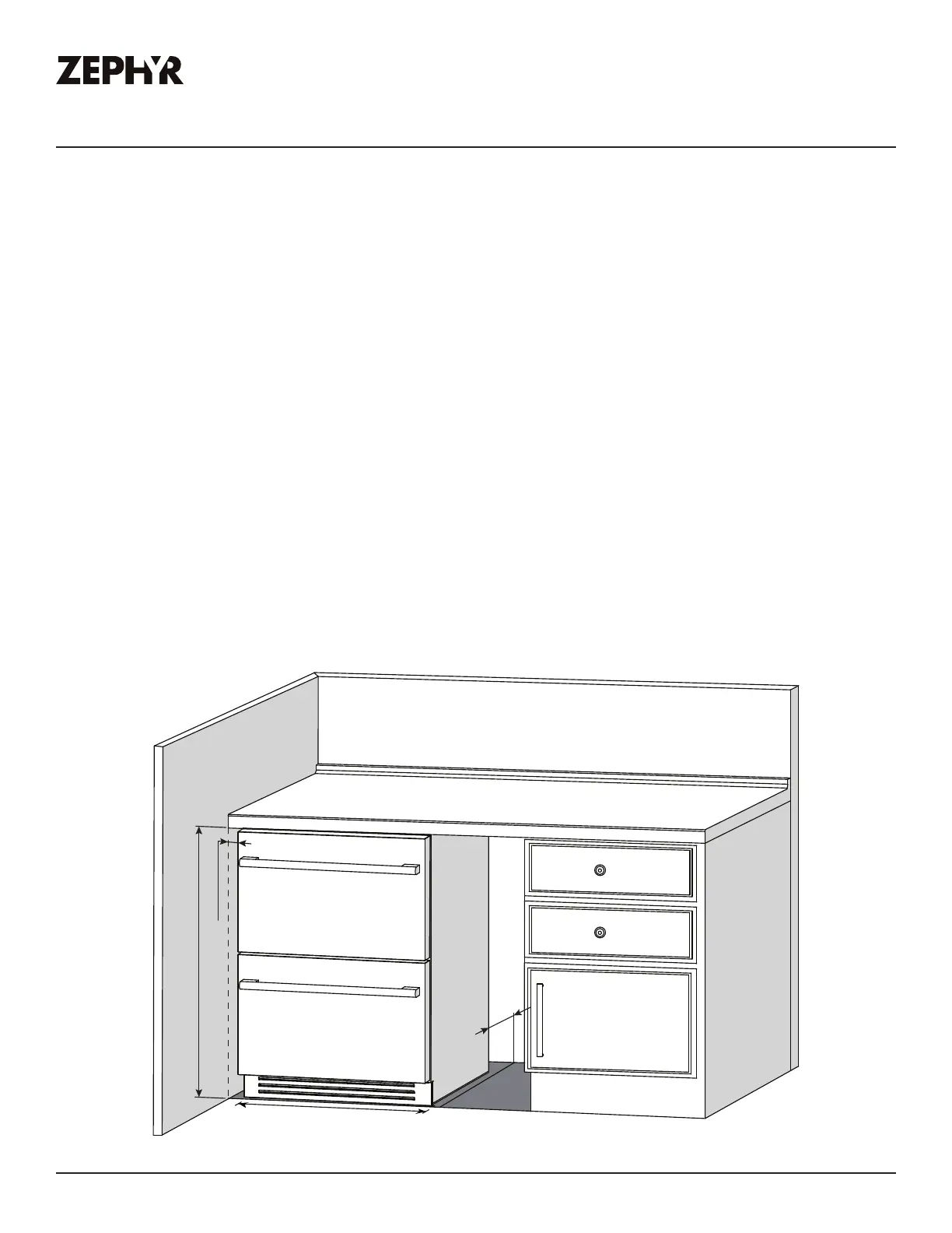 When installing the refrigerator freezer drawers under a counter, follow the recommended spacing