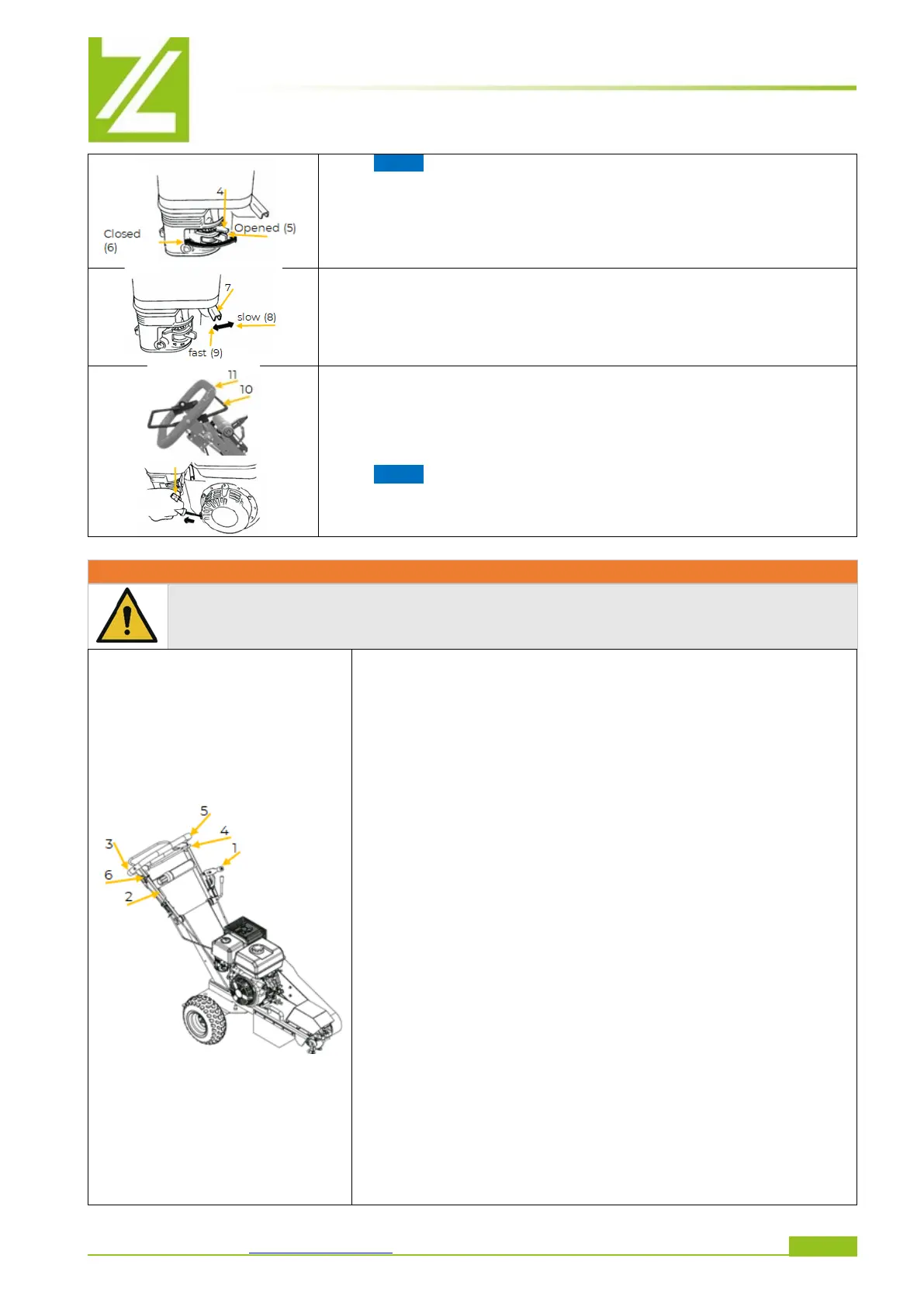 4. Move the choke lever (4) to the “Closed” position (6), only for