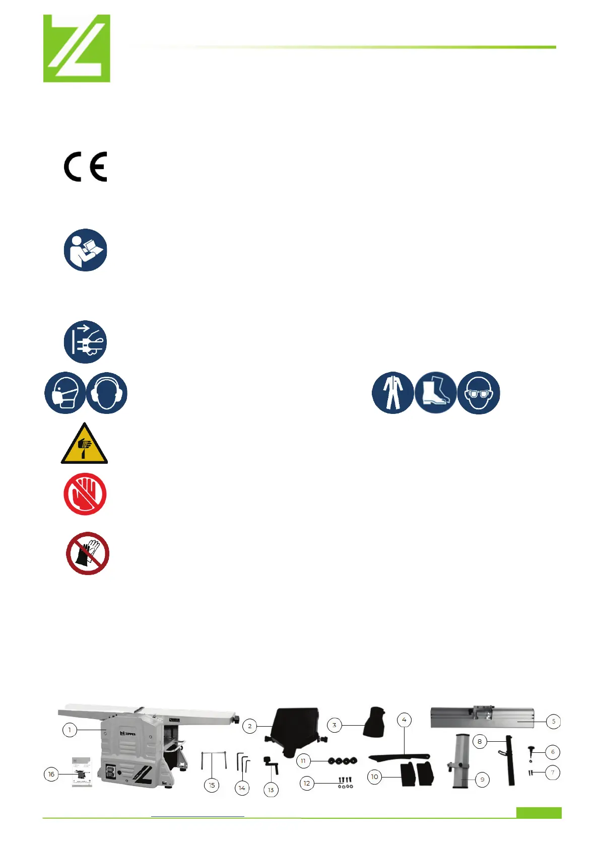 Always keep your hands well clear of the planer shaft. Keep sufficient dis-