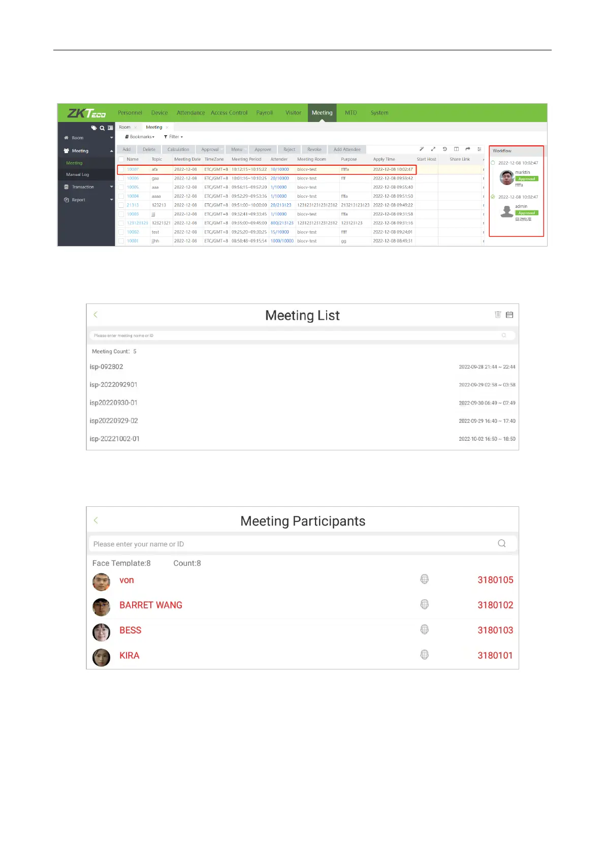 to the firmware menu [Meeting Management] > [Meeting List] to view it.