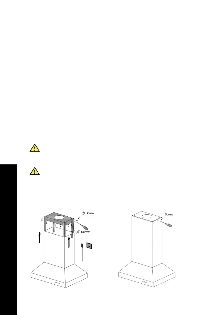 6. Slide chimney pieces over the angle iron on the hood. Pull the electrical plug to