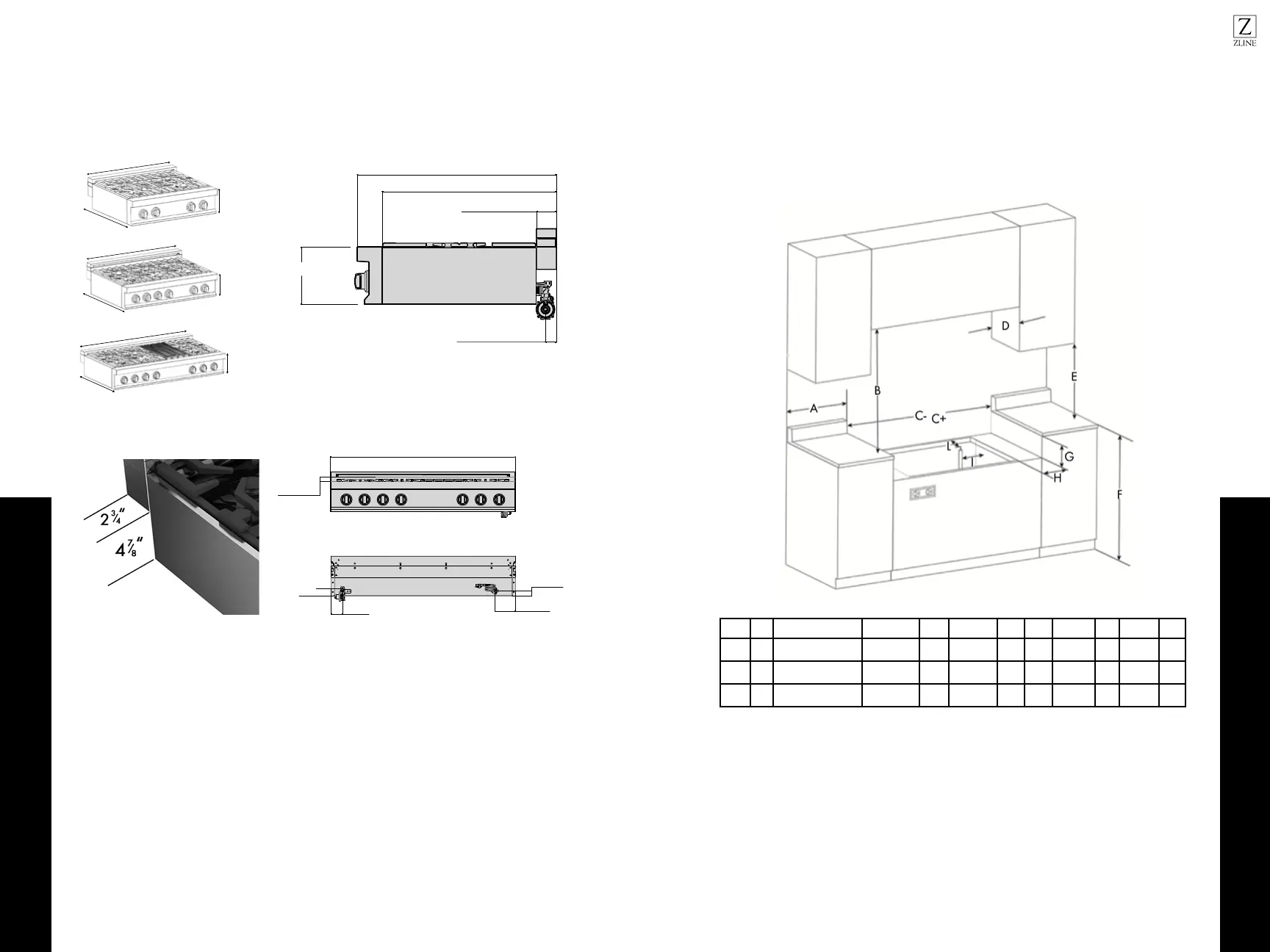 Place the range top in the appropriate-sized cabinet base. Review cutout sizes. The