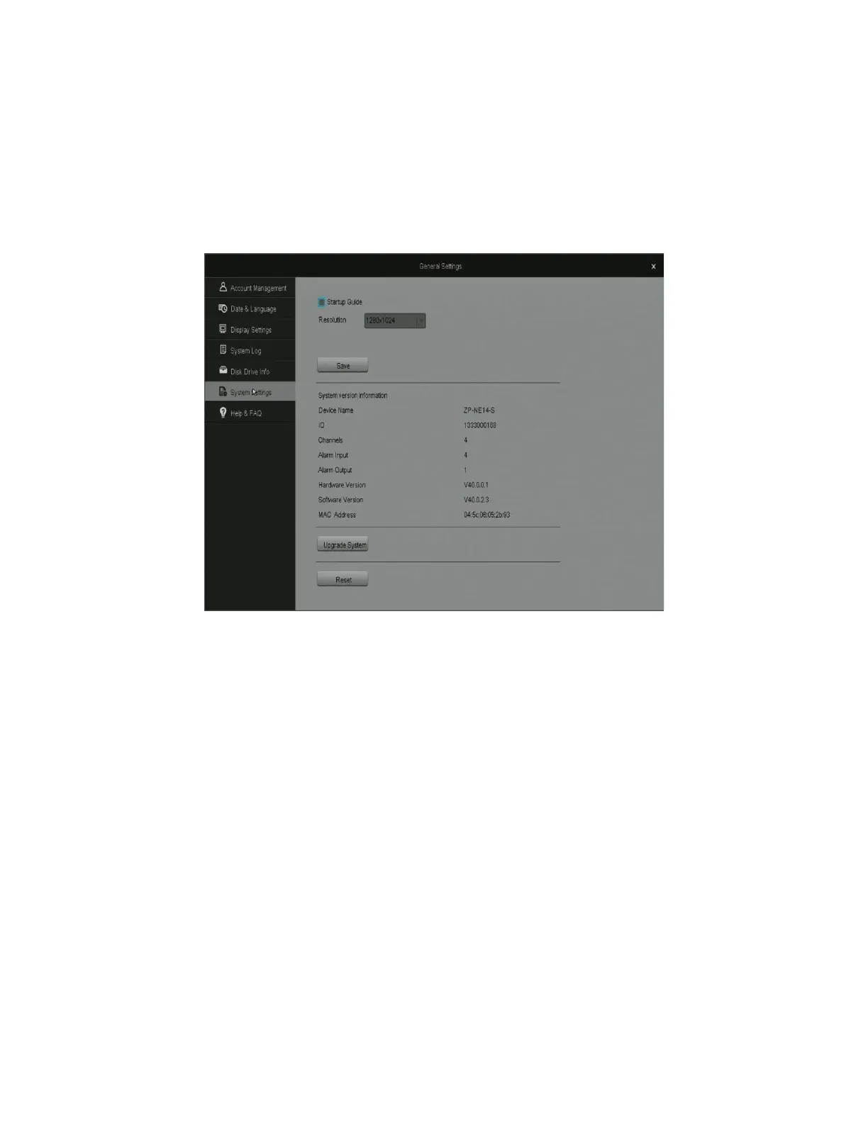 4. Go to the [General Settings] menu in the Main Menu and access the [System