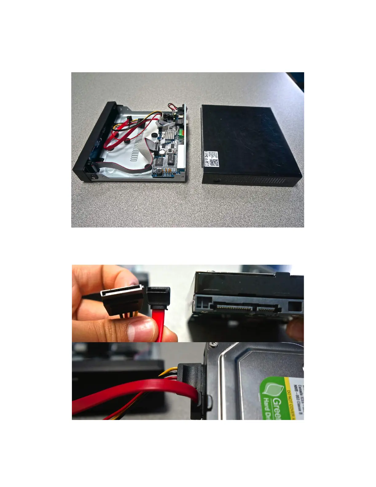 2. Connect the SATA power and data cables from the NVR to the corresponding