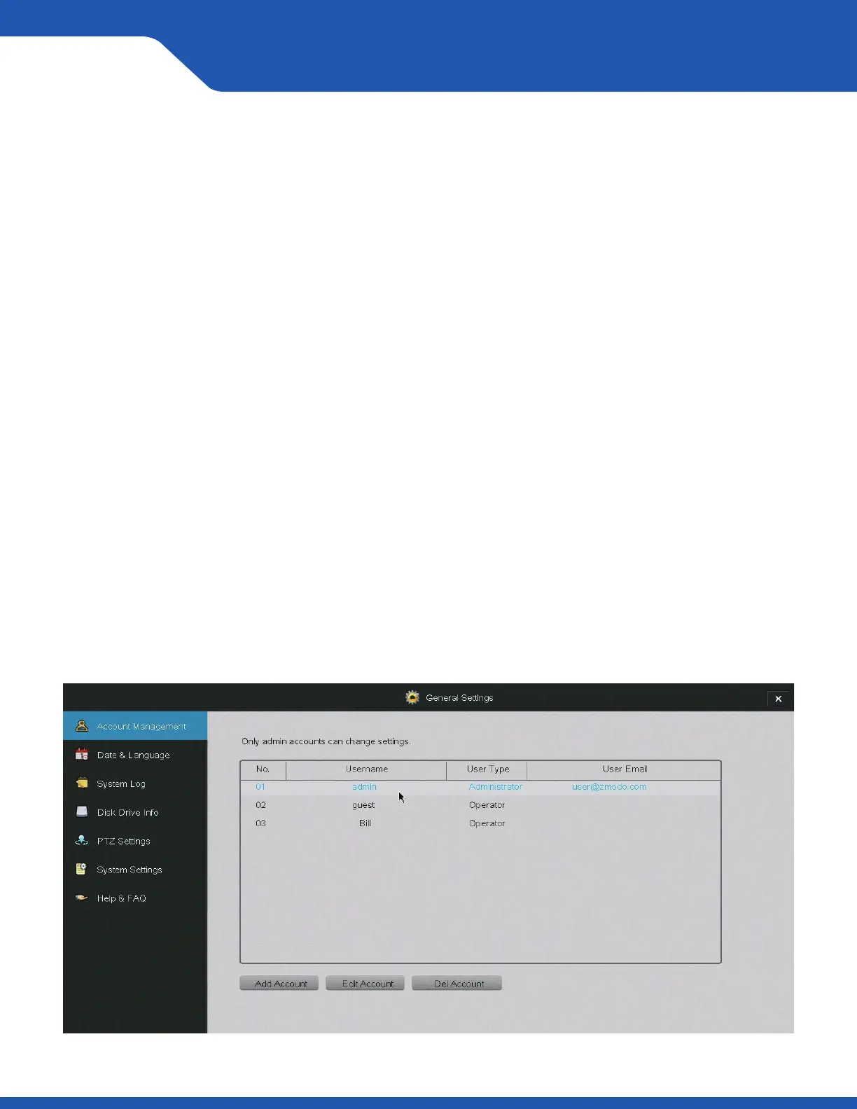 This DVR supports multiple user profi les with di erent permissions, which allow you