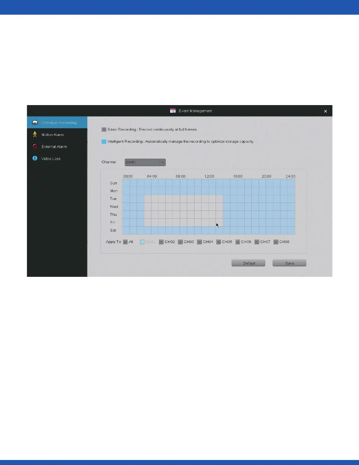 scenes, the DVR will record at a lower framerate to optimize storage capacity.