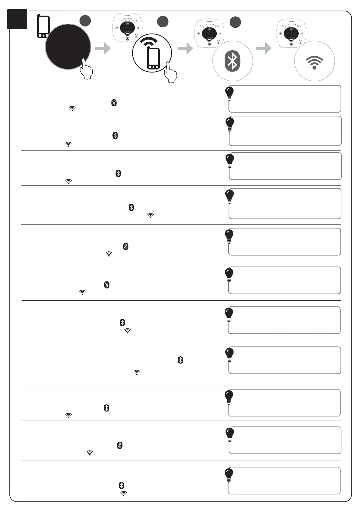 (lumină continuă) = asociat cu telefonul. Wi-Fi