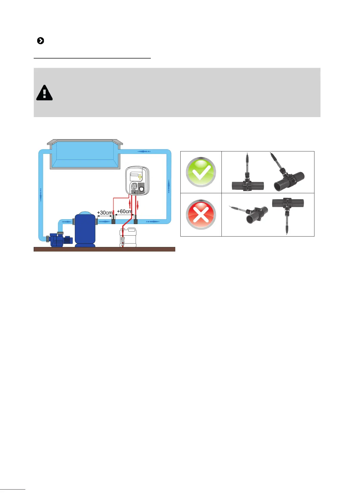 • The ORP sensor must be placed a� er the lter and before the hea ng system,