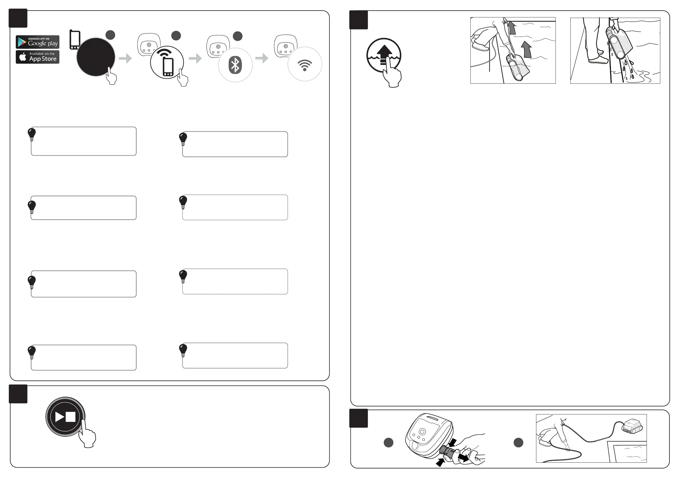 > Ta upp rengöraren ur vattnet. Lyft aldrig rengöraren ur poolen