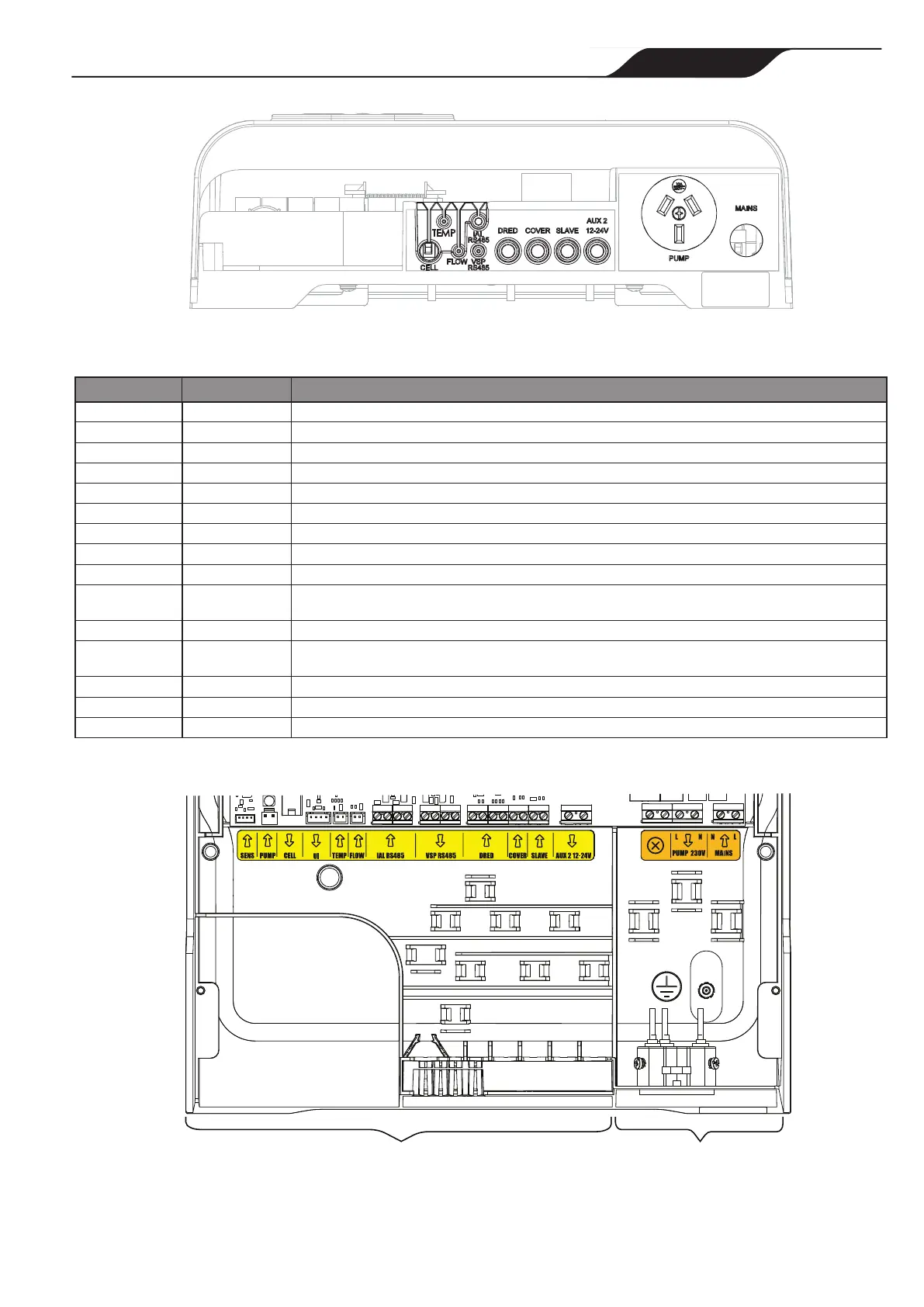 PUMP 230V Output 230 V Power supply for the filtration pump Maximum 8A