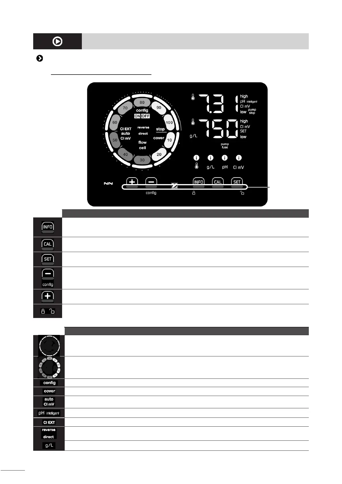 - Toegang tot het Conguraemenu (5 s ingedrukt houden met een chloorproduce van 0 %)
