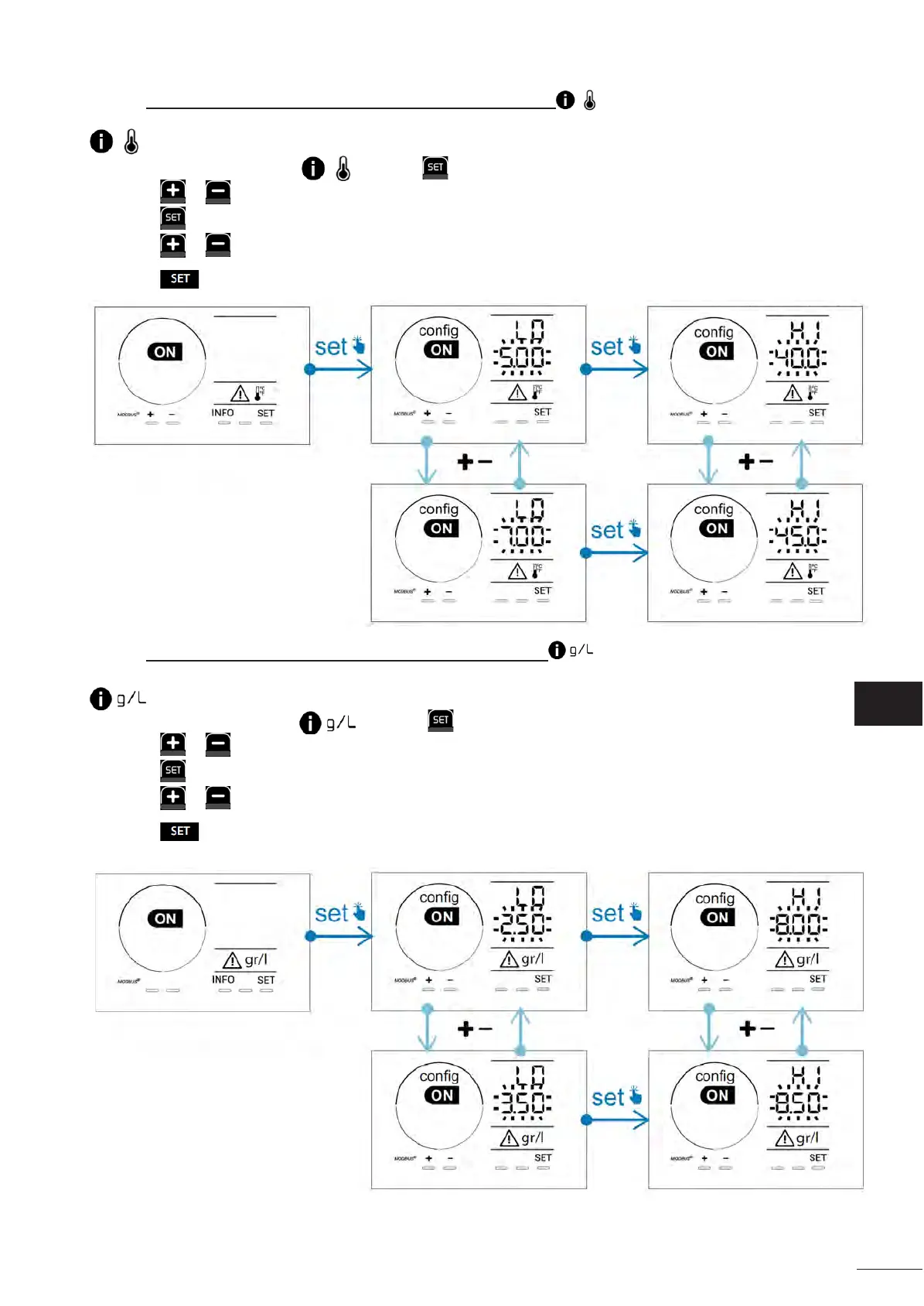 • Vanuit de modus Congurae/ drukt u op : de minimum waarde (aangegeven door “LO”) knippert.