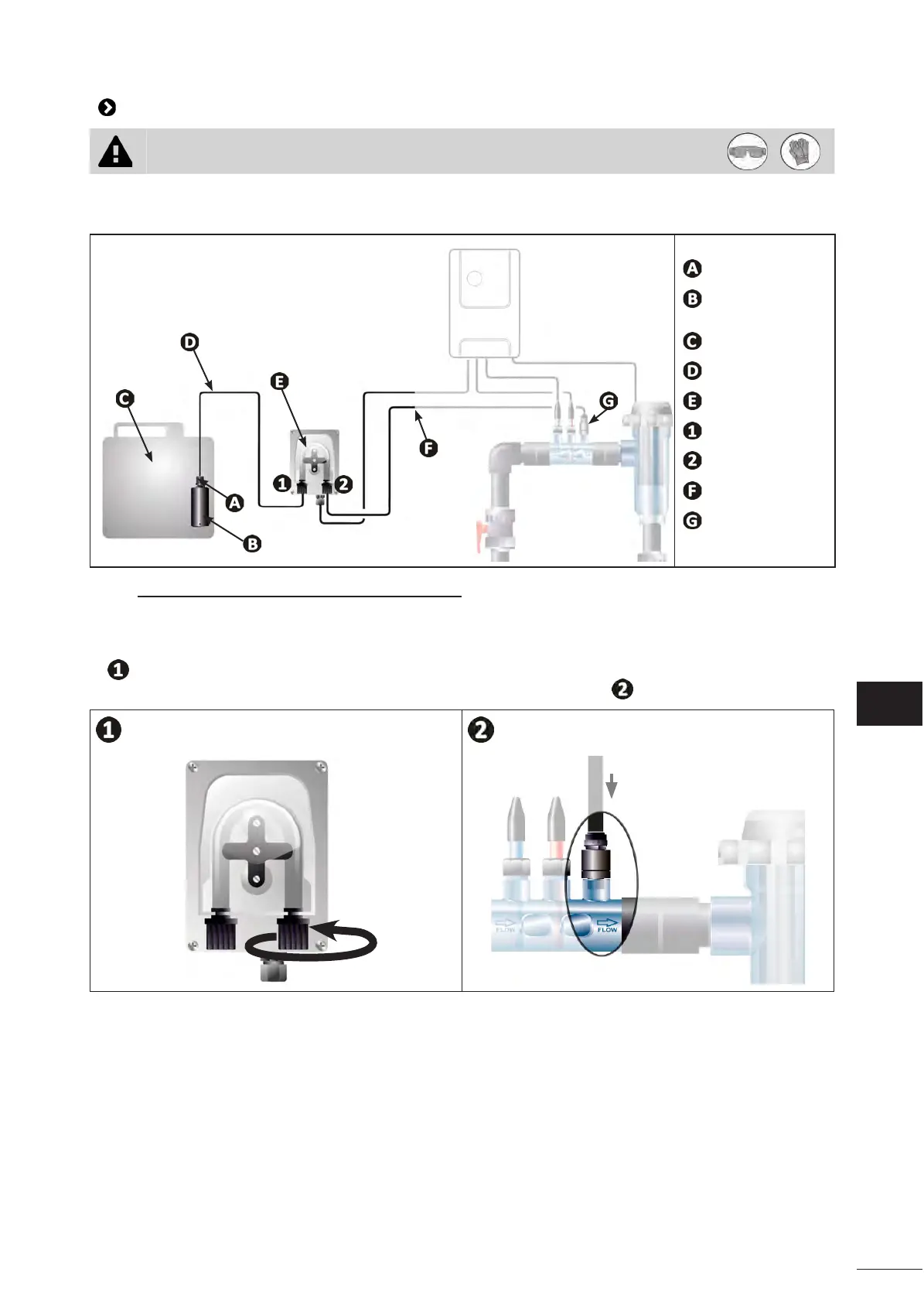 • La bomba pH es una bomba peristálca que gira en sendo horario: permite aspirar el ácido (pH-minus) para inyectarlo