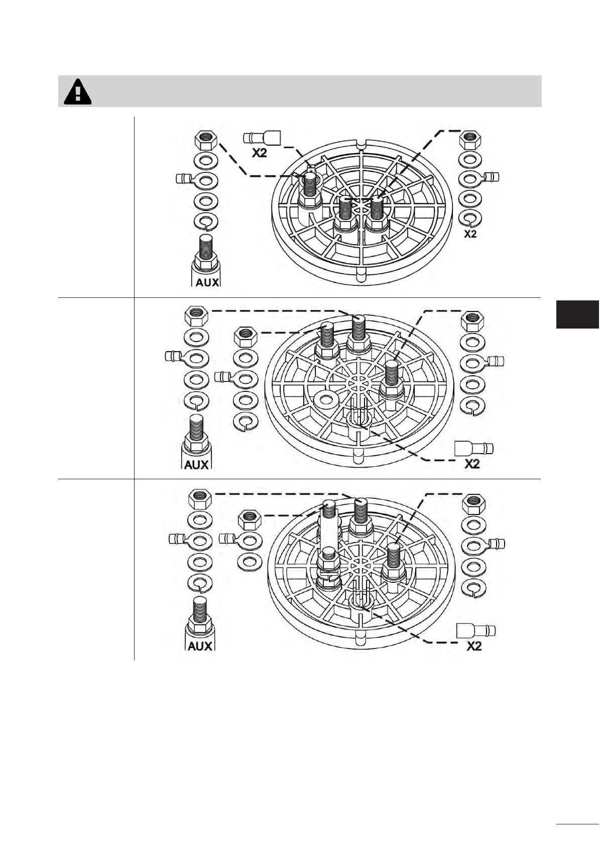 • Aach the connectors by successively installing the terminals, washers, and nuts (see following table).