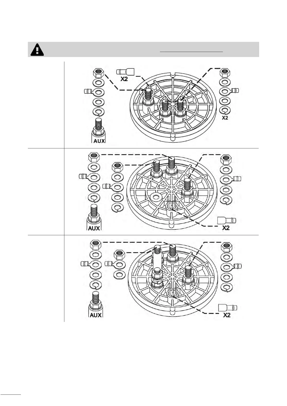 • Die Verbindungen durch die richge Reihenfolge der Kabelschuhe, Unterlegscheiben und Muern moneren (siehe