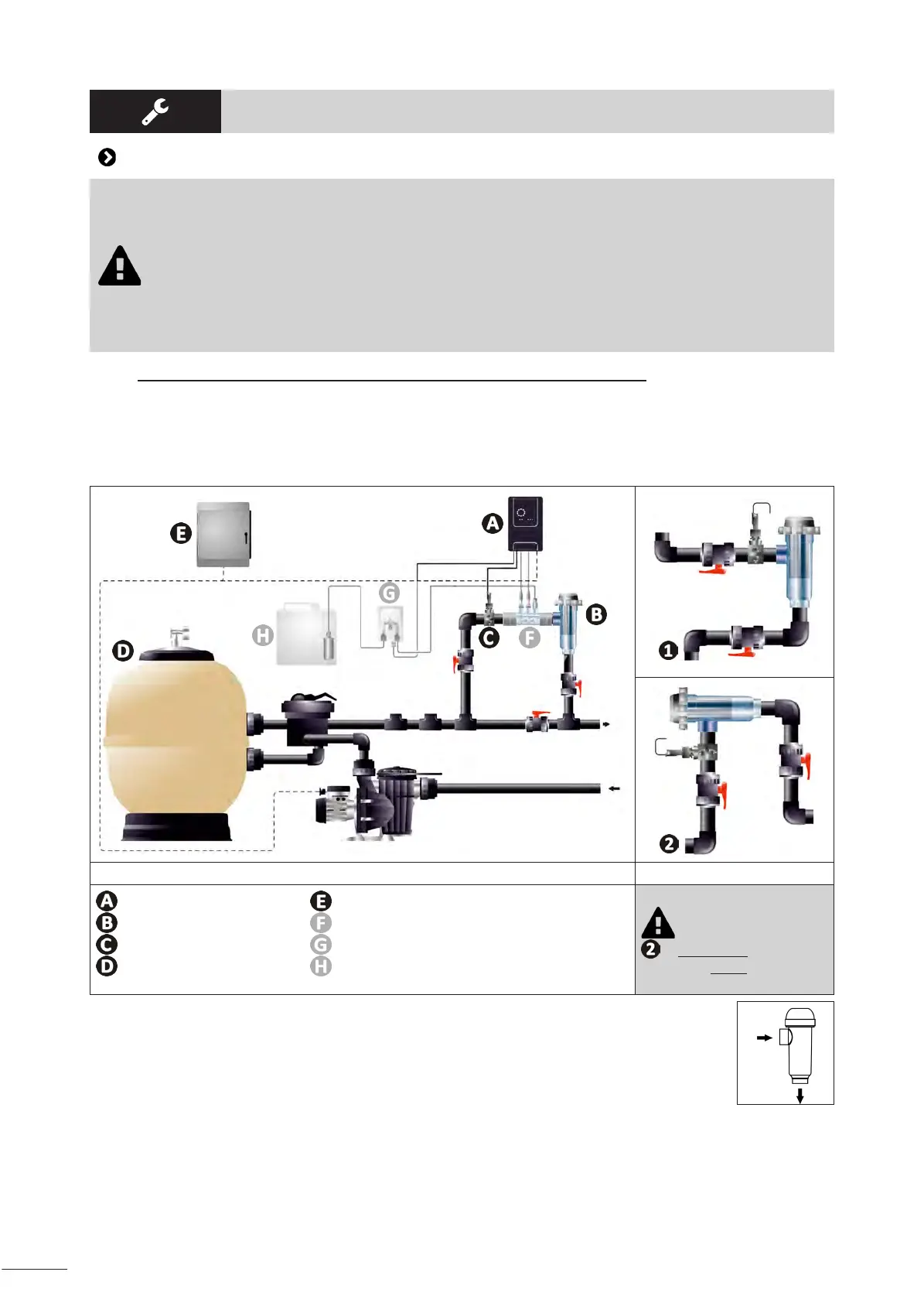• De cel moet aljd het laatste element zijn op de retourleiding naar het zwembad (zie § “2.1.1.