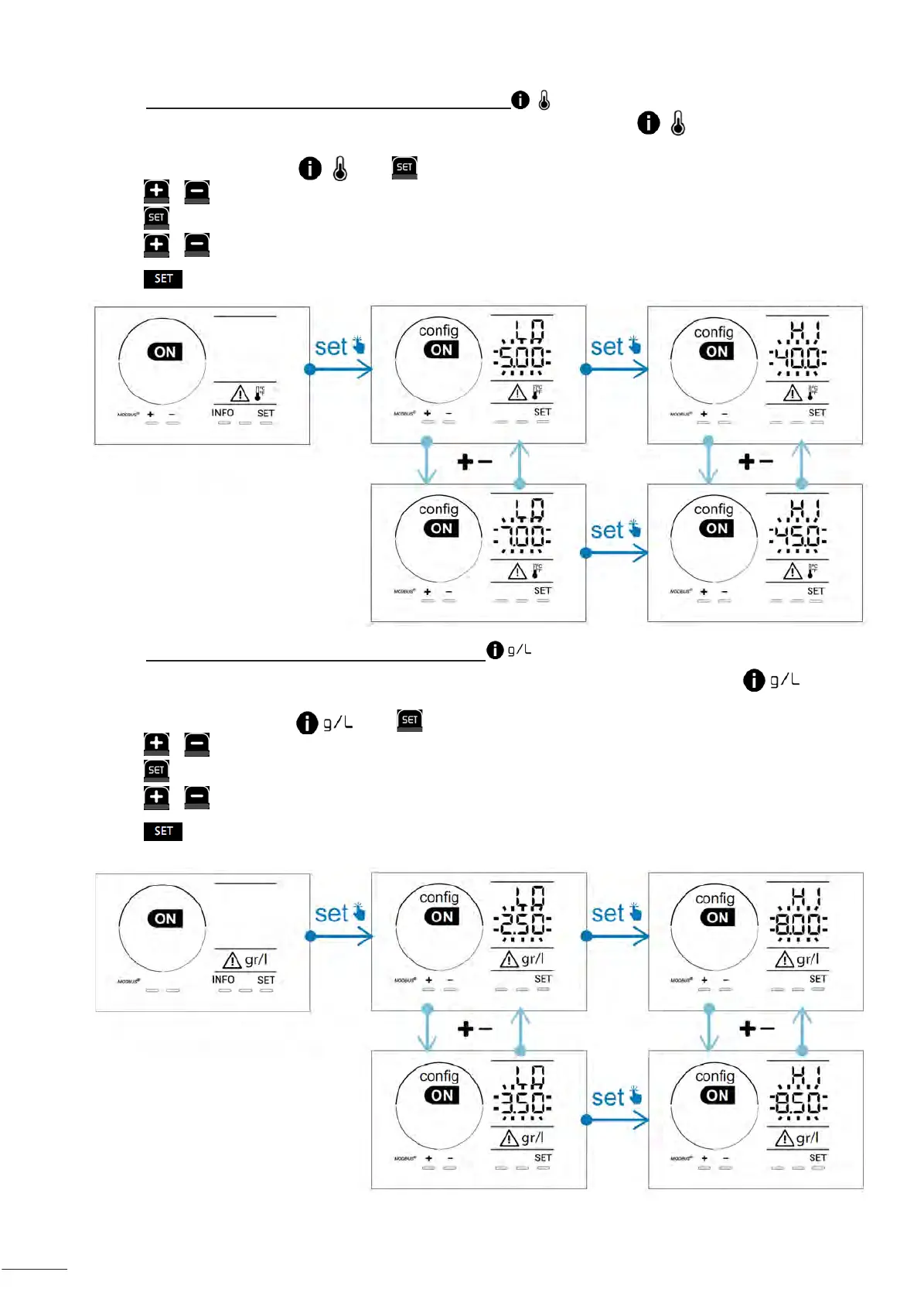 • Desde el modo Conguraon/ , pulse : el valor mínimo (indicado por «LO») parpadea.