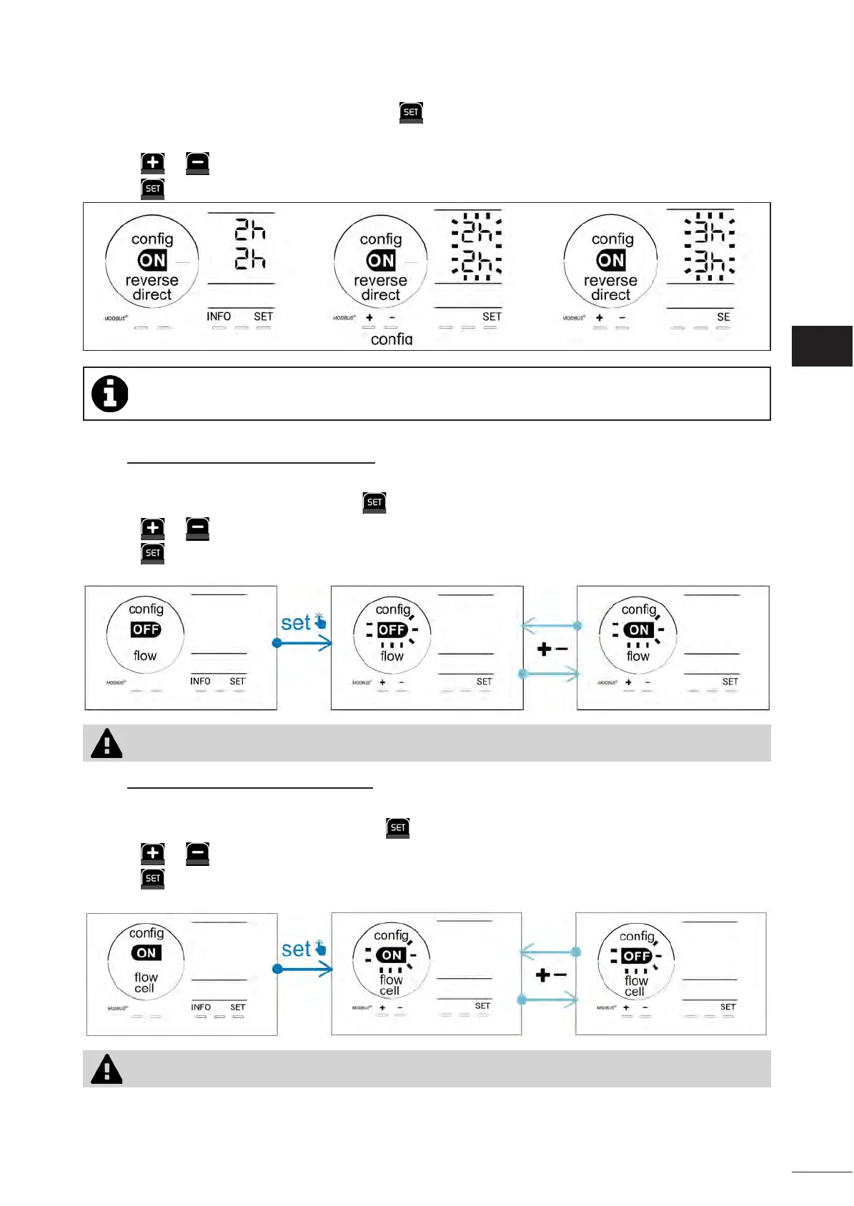 No momento da inversão, a cloração é interrompida durante alguns minutos. Nenhuma mensagem é exibida
