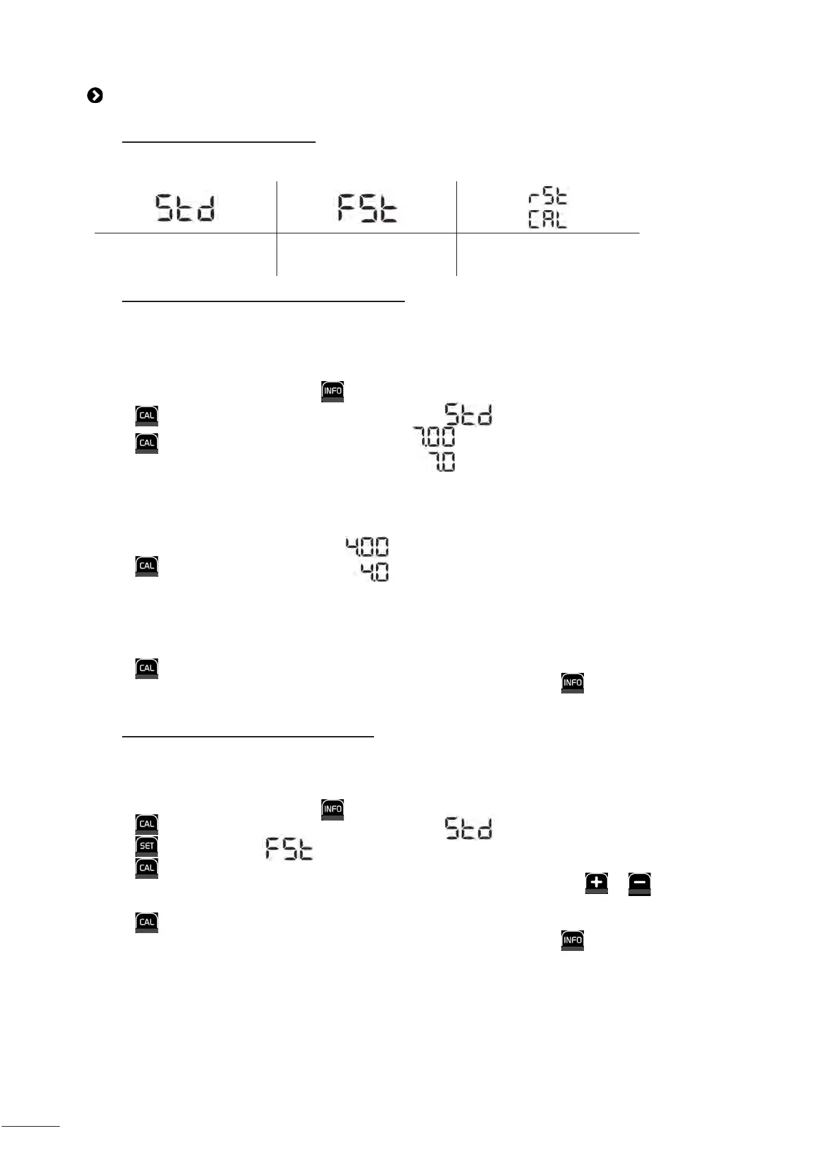 • Premir para entrar no modo Calibração. O ecrã apresenta (“Standard”).
