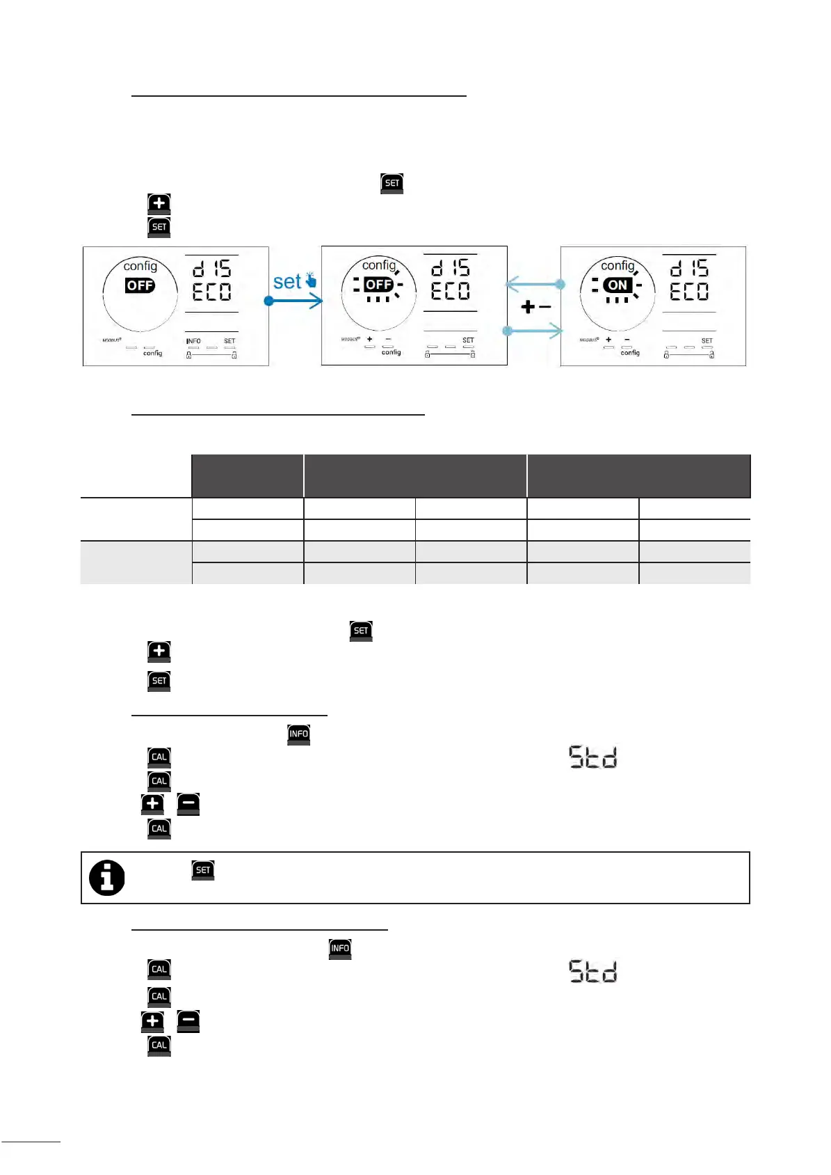 • Dalla modalità Congurazione/D15 ECO, premere : “OFF” lampeggia.