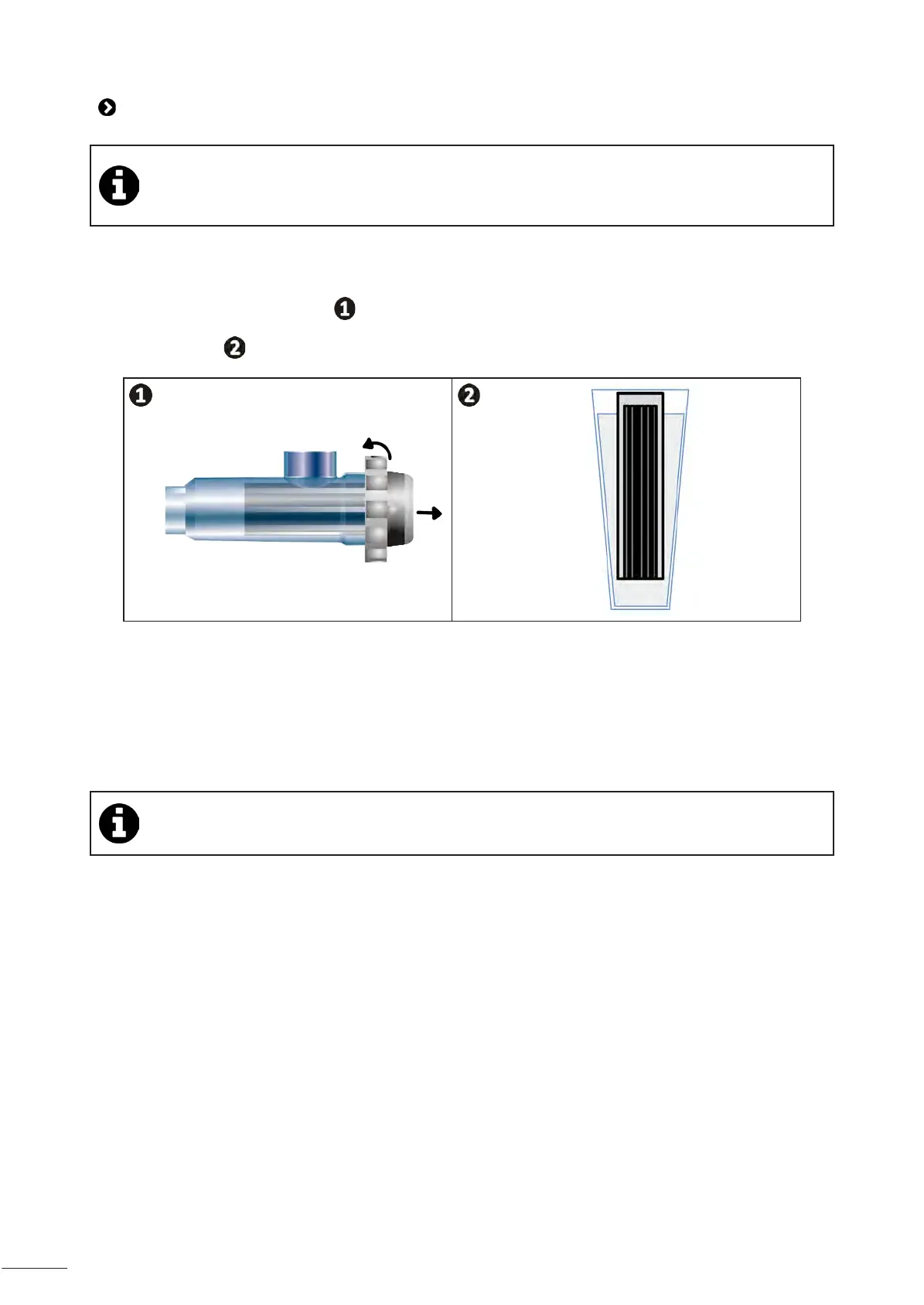 • Immergere la parte contenente le piastre dell’elerodo in un recipiente adao contenente la soluzione per la pulizia